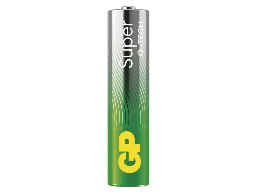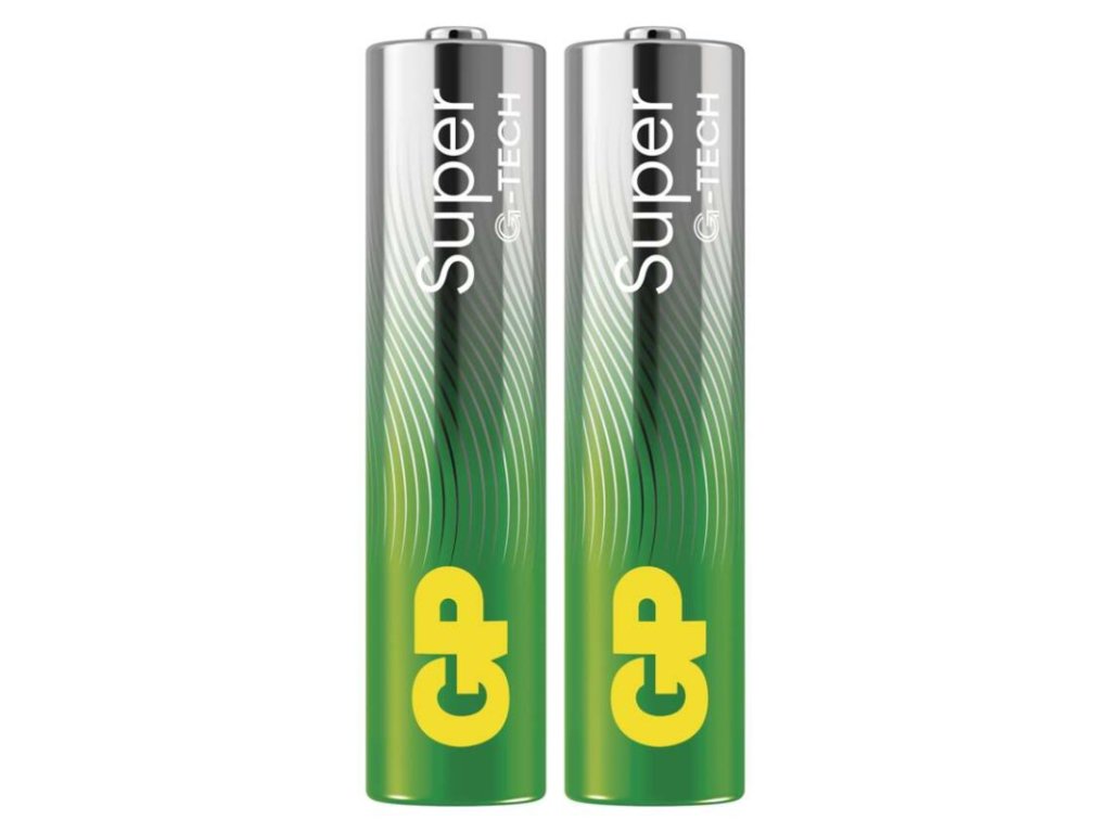 chemické složení: alkalické|hmotnost: 11,5 g|kapacita: neuvádí se|kategorie/řada: Super Alkaline|max. skladovatelnost: 10 let|možnost nabíjení: ne|napětí: 1,5 V|počet nabíjecích cyklů: nenabíjecí|prodejní obal: 2 ks, fólie|provozní teplota: -18 °C až +50 °C|rozměr: 10,5 × 44,5 mm|typ: LR03 (mikrotužka, AAA)|velikost baterie: AAA|značka: GP