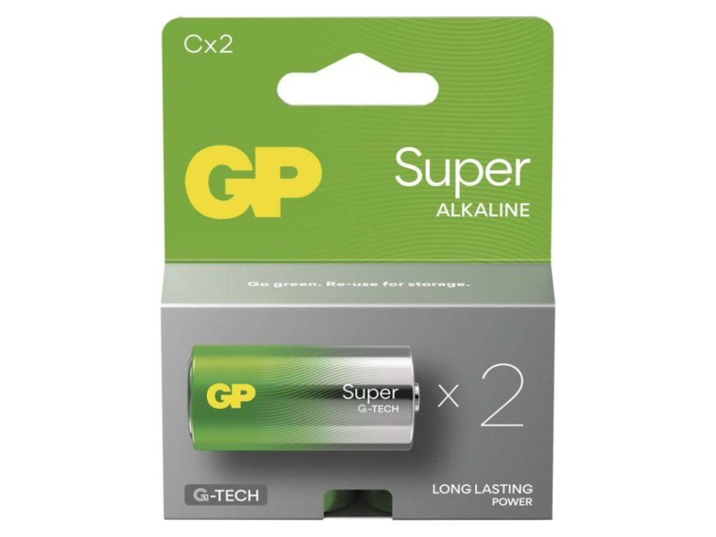 chemické složení: alkalické|hmotnost: 68 g|kapacita: neuvádí se|kategorie/řada: Super Alkaline|max. skladovatelnost: 10 let|možnost nabíjení: ne|napětí: 1,5 V|počet nabíjecích cyklů: nenabíjecí|prodejní obal: 2 ks, papírová krabička|provozní teplota: -18 °C až +50 °C|rozměr: 26,2 × 50,0 mm|typ: LR14 (malé mono, C)|velikost baterie: C|značka: GP