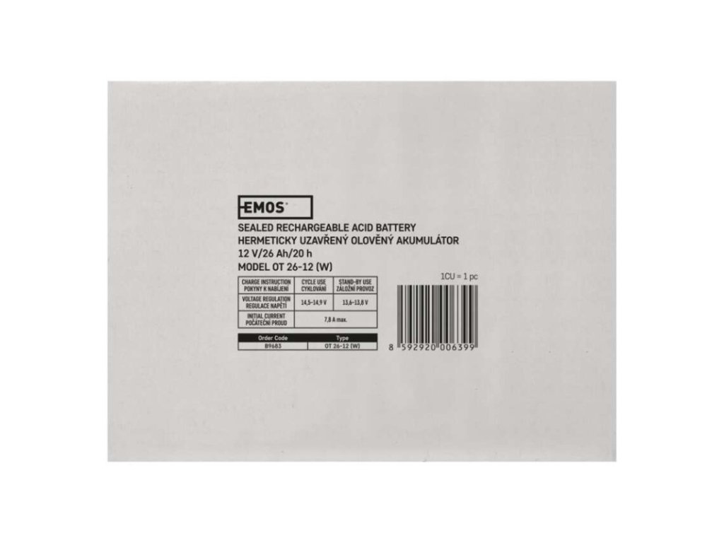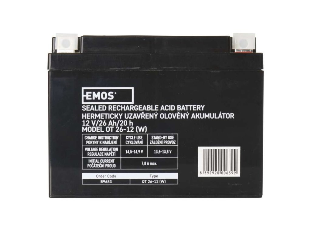 bezúdržbový: ano|chemické složení: Pb|EPS (elektronické požární systémy): ano|EZS (elektronické zabezpečovací systémy): ano|hmotnost: 8,05 kg|kapacita: 26 Ah|napětí: 12 V|nouzové osvětlení: ano|optimální životnost: 5 let|PARADOX: ne|prodejní obal: 1 ks|rozměr: 175 × 165 × 125 mm|technologie: AGM|terminál: 14 × 12 × 2 mm|UPS (záložní zdroje): ano|ÚSTŘEDNY JABLOTRON JA100K: ne|ÚSTŘEDNY JABLOTRON JA106K: ne|ÚSTŘEDNY JABLOTRON JA106K(R): ne|ÚSTŘEDNY JABLOTRON JA82K: ne|ÚSTŘEDNY JABLOTRON JA83: ne|záložní baterie pro výtahy - osvětlení, hovor: ne