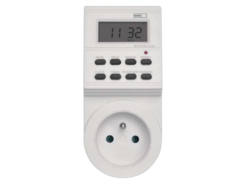 dětské clonky: ano|druh: digitální|funkce odpočítávání countdown: ne|funkce změny letní/zimní čas: ano|krytí: IP20|max. zátěž: 3 680 W|minimální doba sepnutí: 1 minuta|možnost ručního zapnutí: ano|napětí/proud: 230 V~/16 A max.|počet programů: 8|počet spínání za den: 8|prodejní obal: 1 ks, krabice|rozměr: 57 × 130 × 86 mm|spíná: fázový vodič|venkovní použití: ne|záložní akumulátor: 1,2 V; 40 mAh; NiMH (knoflíková baterie 1× 1,2 V)
