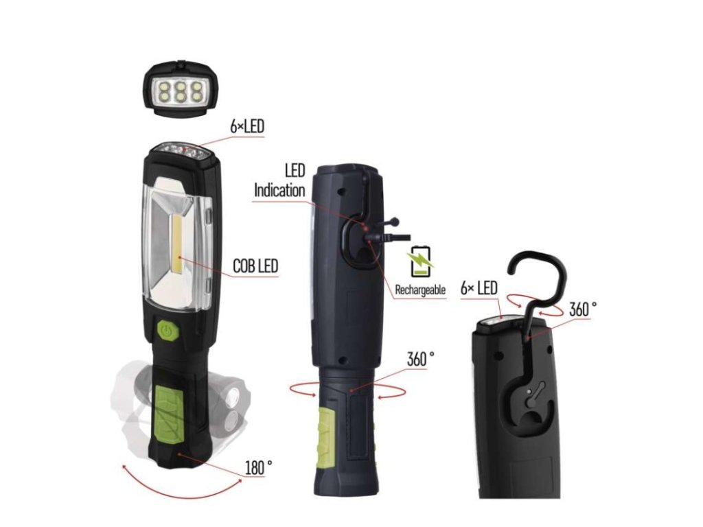 COB LED + LED nabíjecí prac. svítilna P4518, 380 lm,2500 mAh