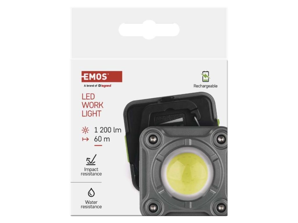 barva: šedá|baterie součástí balení: ano|doba nabíjení: 3 h|doba svícení: 3,5–6,5 h|doba svícení detail: COB LED 100 % – 3,5 h, COB LED 30 % – 6,5 h|dosvit: COB LED 100 % – 60 m, COB LED 30 % – 30 m|fokus: ne|hmotnost: 160 g|LED indikace nabíjení: ano|LED indikace stavu akumulátoru: ano|materiál: plast|maximální dosvit: 60 m|maximální světelný tok: 1 200 lm|nabíjecí: ano|napájení: Li-pol|nárazuvzdornost: ano|počet režimů svícení: 3|příslušenství: USB-C kabel|prodejní obal: 1 ks, krabice|režimy svícení: COB LED 100 %, COB LED 30 %, blikání|rozměr: 80 × 45 × 80 mm|speciální funkce: funkce rychlého vypnutí, funkce ochrany baterie|světelný tok: COB LED 100 % – 1 200 lm, COB LED 30 % – 400 lm|typ baterie: 2 000 mAh/3,7 V|typ napájecího konektoru: USB C|voděodolnost: ano (IP44)|vybavení: magnet, otočný stojánek, klip|záruční doba: 2 roky|zdroj světla: COB LED|značka: EMOS