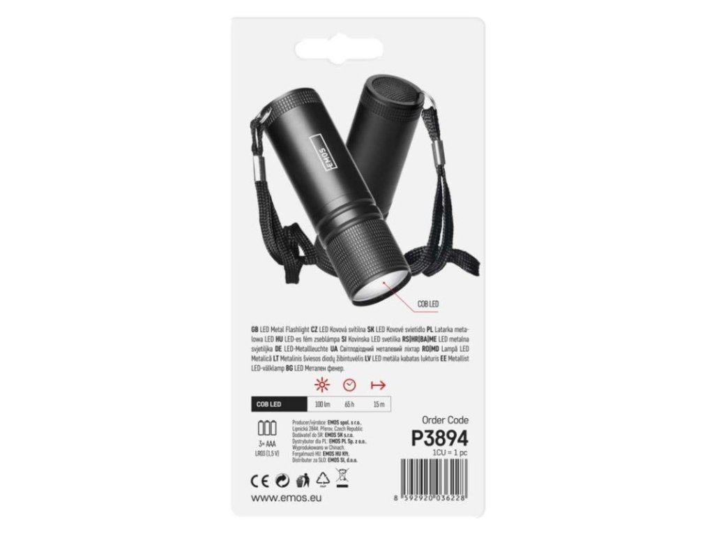barva: černá|baterie součástí balení: ne|doba nabíjení: neuvádí se|doba svícení: 35 h|doba svícení detail: COB LED 100 % – 35 h|dosvit: COB LED 100 % – 15 m|fokus: ne|hmotnost: 34 g|LED indikace nabíjení: neuvádí se|LED indikace stavu akumulátoru: neuvádí se|materiál: hliník|maximální dosvit: 15 m|maximální světelný tok: 100 lm|nabíjecí: ne|napájení: 3× AAA|nárazuvzdornost: ano|počet režimů svícení: 1|příslušenství: neuvádí se|prodejní obal: 1 ks, blistr|režimy svícení: COB LED 100 %|rozměr: 85 × 25 × 25 mm|speciální funkce: neuvádí se|světelný tok: COB LED 100 % – 100 lm|typ baterie: LR03 (1,5 V)|typ napájecího konektoru: neuvádí se|voděodolnost: ne|vybavení: poutko|záruční doba: 2 roky|zdroj světla: COB LED|značka: EMOS