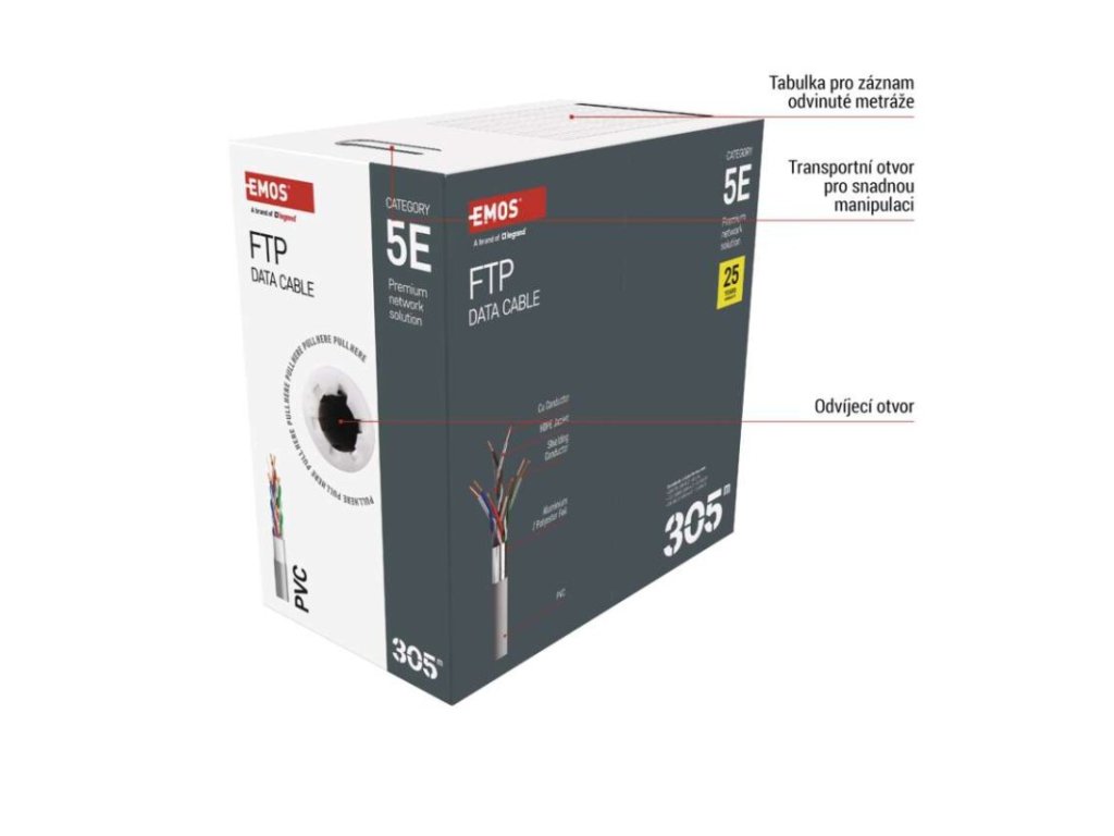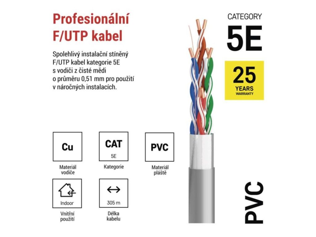 | značení kabelu: | FTP Cat5E PVC 1 – 305 m |