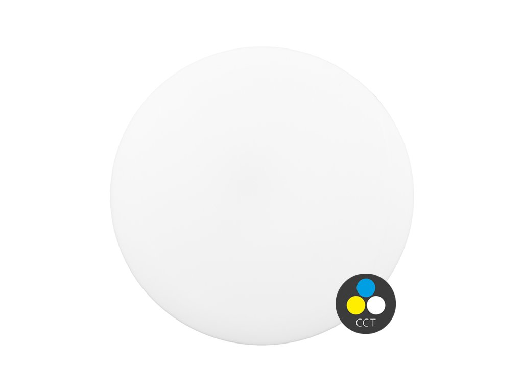 Svítidlo DISK je jednoduché a cenově dostupné řešení do jakýchkoliv vnitřních prostorů s nenáročným provozem. Vyrobeno je z plastu a nabízí vylepšené krytí IP44. Hlavní předností je možnost manuálního přepínání mezi 3 teplotami chromatičnosti a sice 3000K (Warm White), 4000K (Neutral White) a 6500K (Cool White).