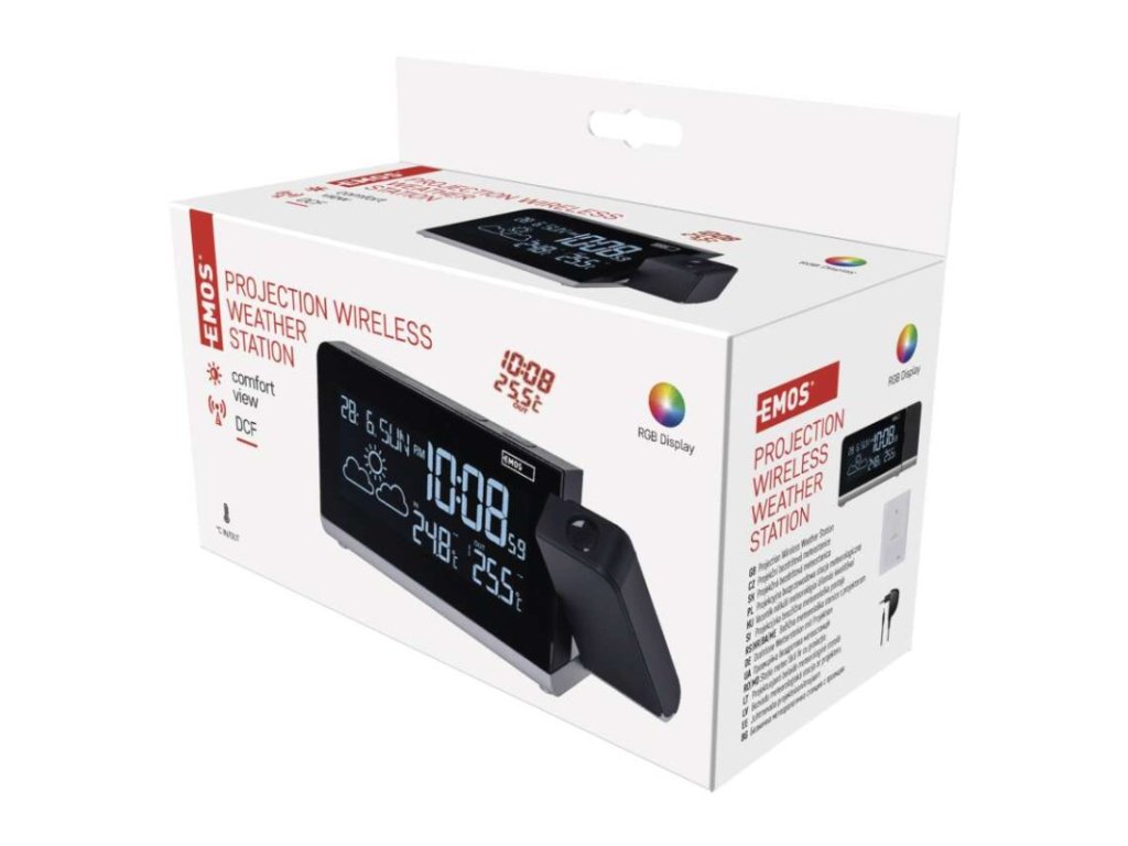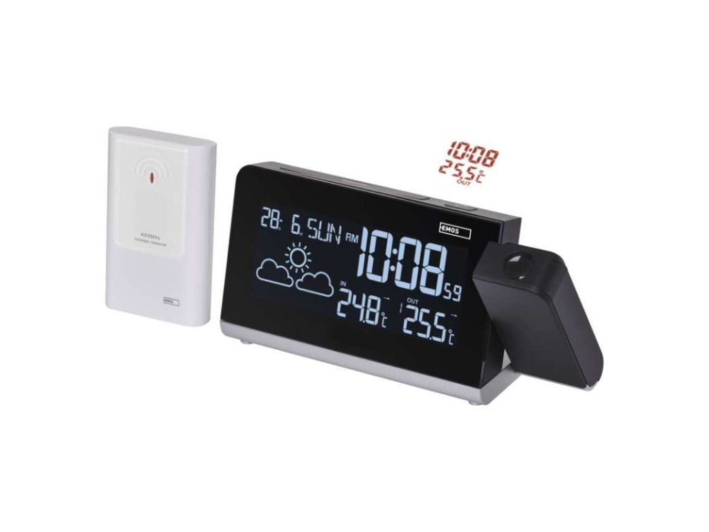 12/24 formát času: ano|anemometr: ne|barevný displej (black mask) podsvícený: ano|barometr: ne|budík: ano, 2×|časová pásma: ne|datum: ano|dosah čidla: až 30 m|drátová sonda k čidlu: ne|elektronické plošné podsvícení: ne|fáze měsíce: ne|hodiny: řízené DCF signálem|kalendář: ano|korekce nadmořské výšky: ne|LED podsvícení displeje: ne|min. a max. teplota: ano|možné další čidlo: až 3 čidla (E08400)|možnost nastavení jednotky teploty: °C/°F|možnost pověšení na zeď: ne|napájení čidla: 2× 1,5 V AA (nejsou součástí balení)|napájení stanice: 1× CR2032 (součástí balení)|opakované buzení: ano|předpověď počasí: ano|přenosová frekvence: 433 MHz|prodejní obal: 1 ks, krabička|produkt: meteostanice|projekce: projekce času a teploty|provedení: bezdrátové|rozměr čidla: 35 × 65 × 100 mm|rozměr hlavní jednotky: 56 × 163 × 80 mm|síťový adaptér: ano, 4,5 V DC/300 mA (součástí balení)|srážkoměr: ne|teplotní výstraha: ne|trend teploty: ano|trend tlaku: ne|trvalé podsvícení: ano|velikost displeje: 102 × 42 mm|venkovní teplota: -20 °C až +60 °C, rozlišení 0,1 °C|venkovní vlhkost: ne|vnitřní teplota: -5 °C až +50 °C, rozlišení 0,1 °C|vnitřní vlhkost: ne
