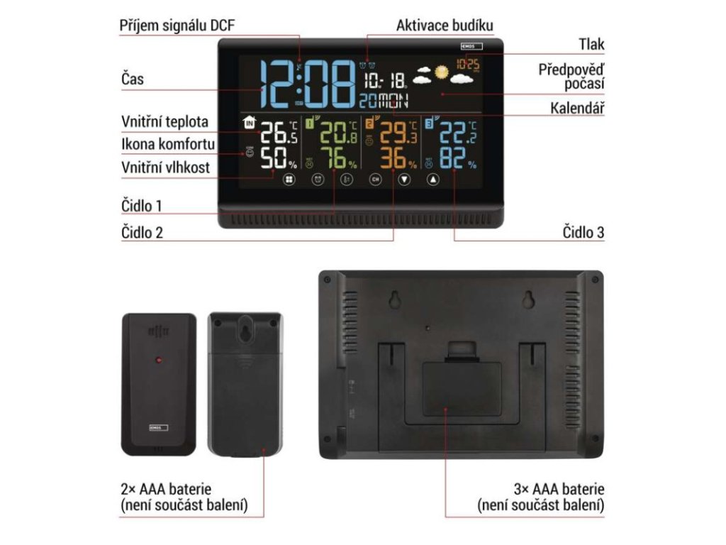 | napájení stanice: | 3× 1,5 V AAA (nejsou součástí balení) |