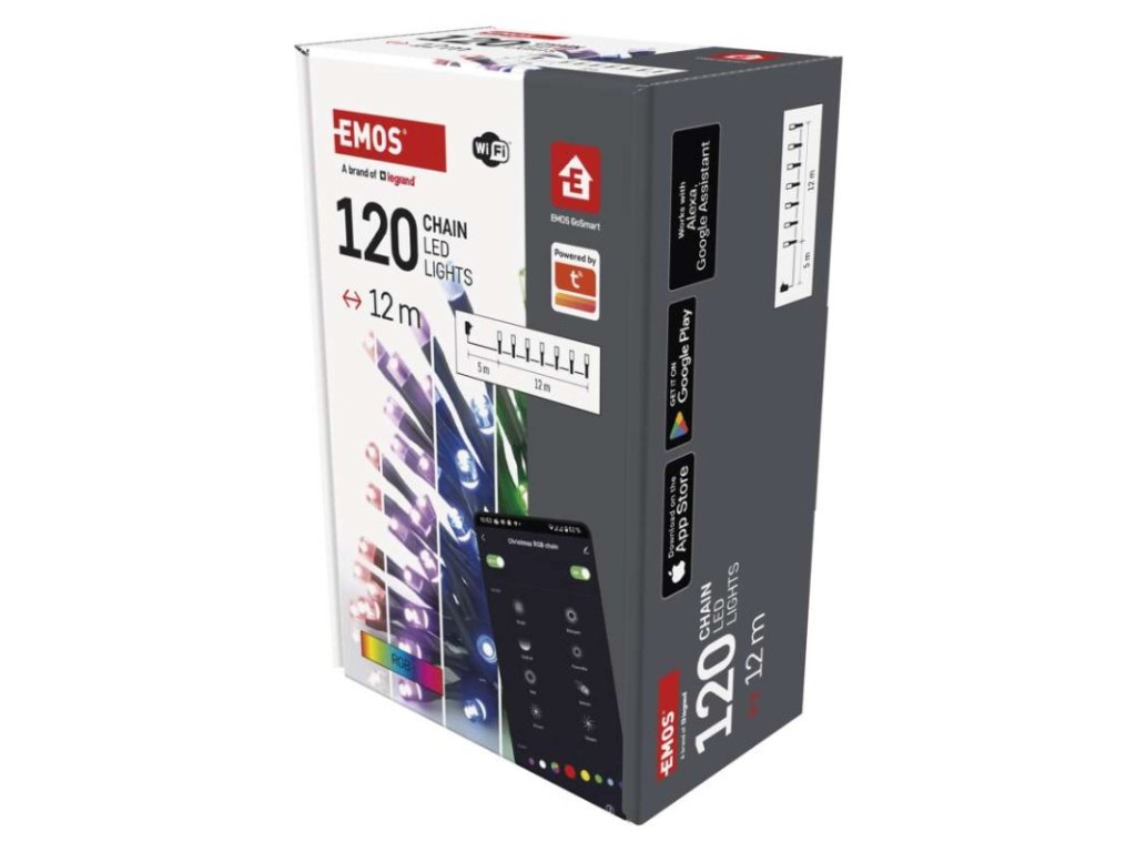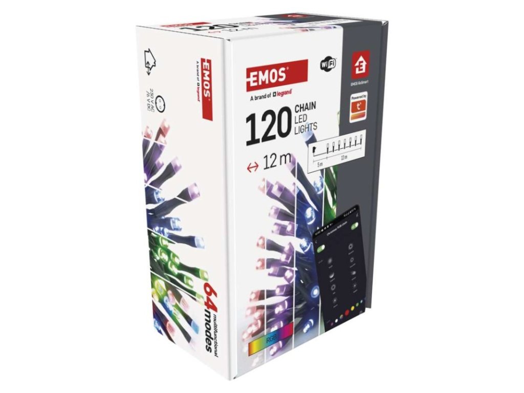 barva drátu: černá|barva světla: RGB|časovač: ano|dálkový ovladač: ne|další funkce: –|délka přívodu: 5 m|funkce: 64 módů (multifunkce)|jazyky aplikace: EN, CZ, SK, PL, DE, HU, SI, FR, + 60 dalších jazyků|kompatibilita: EMOS GoSmart, TUYA, LIDL, Smartlife, Otevřený systém|krytí: IP44|LED mezera: neuvádí se|materiál: PVC|možnost propojení: ne|notifikace do mobilní aplikace: ano|ovládání hlasovými asistenty: ano|počet LED: 120|podporované OS: Android, iOS|použití: venkovní i vnitřní|přenosová frekvence: 2,4 GHz (IEEE802.11b/g/n)|příkon: 8,4 W|prodejní obal: 1 ks, krabice|produkt: řetěz|protokol: Wi-Fi|pro výšku stromu: neuvádí se|rozměr: 12 m|tvar: neuvádí se|typ napájení: síťový adaptér|velikost LED: neuvádí se|vstupní napětí: 230 V AC|výstupní napětí: 6 V DC|záruční doba: 2 roky|životnost: 10 000 hodin