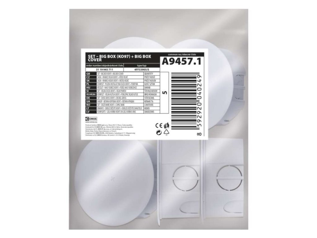 prodejní obal: 5 ks, PE sáček|produkt: krab. odbočná pod omítku s víčkem|rozměr: 93 × 47 mm|určeno pro: vytvoření rozsáhlých instalací (mnoho vstupů)