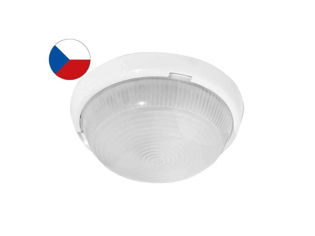 Přisazené stropní nebo nástěnné kruhové svítidlo s vyšším krytím proti vodě a prachu. Plastová základna s průchodkami pro průběžnou montáž a skleněný kryt. Matné sklo Je vhodné zejména do sklepů, chodeb atd.