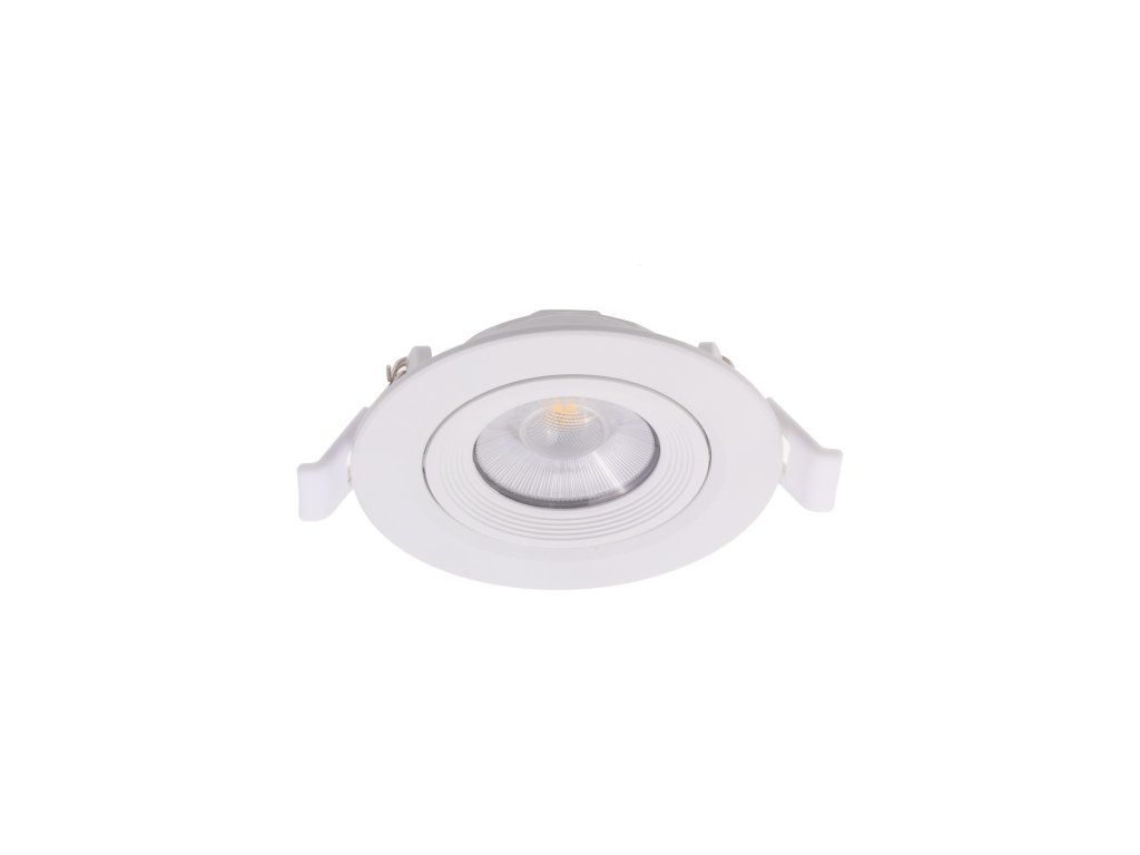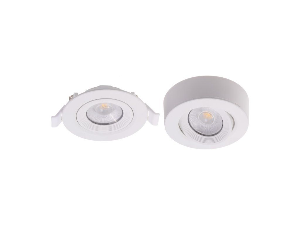 Stropní bodové nebo podhledové LED svítidlo v bílé barvě s krytím IP44 vhodně pro instalaci na strop v interiérech jako jsou kuchyně, obývací pokoje, koupelny a podobně, ale také pro osvětlení venkovních prostor. Svítidlo můžete také nainstalovat do podhledů pomocí pružin v balení.