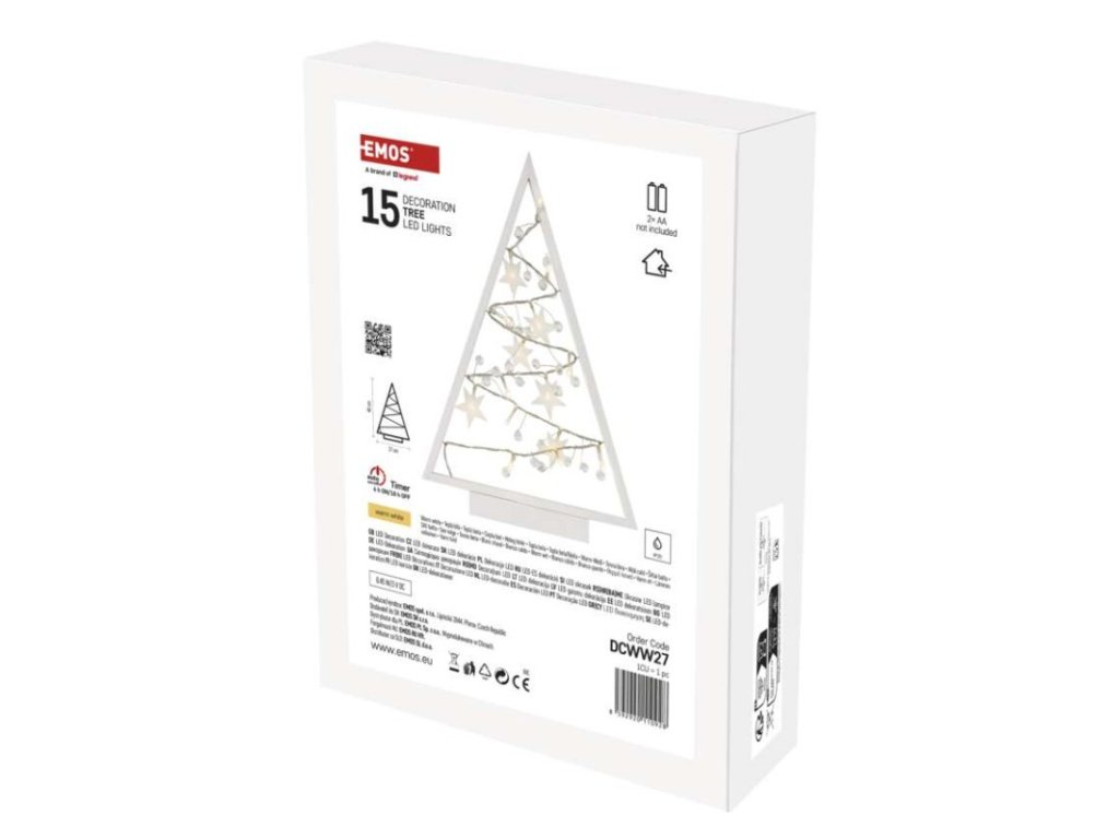 barva drátu: neuvádí se|barva světla: teplá bílá|časovač: ano|dálkový ovladač: ne|délka přívodu: neuvádí se|krytí: IP20|materiál: dřevo|počet LED: 15|použití: vnitřní|příkon: 0,45 W|prodejní obal: 1 ks, krabice|produkt: stromek|rozměr: 27 × 40 × 5 cm|typ napájení: baterie 2× AA (není součástí balení)|vstupní napětí: neuvádí se|výstupní napětí: 3 V DC|záruční doba: 2 roky|zdroj svícení: LED|životnost: 10 000 hodin