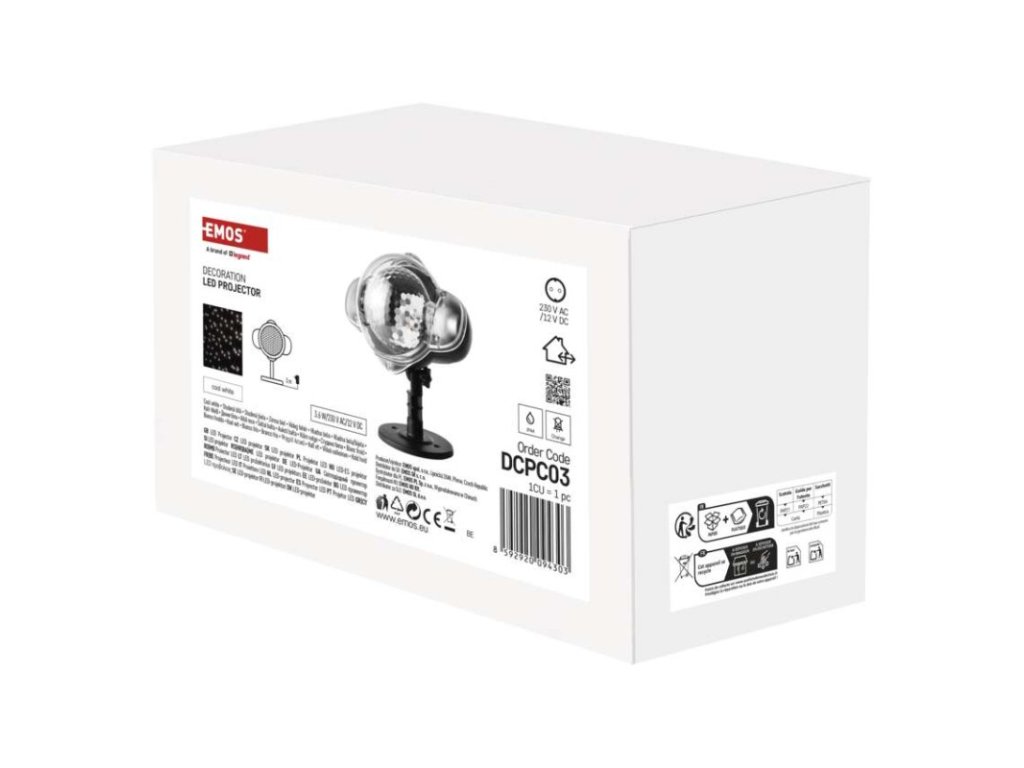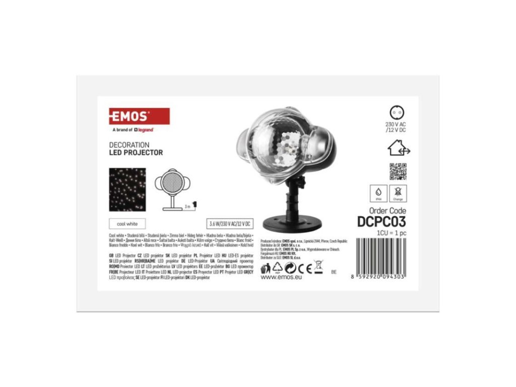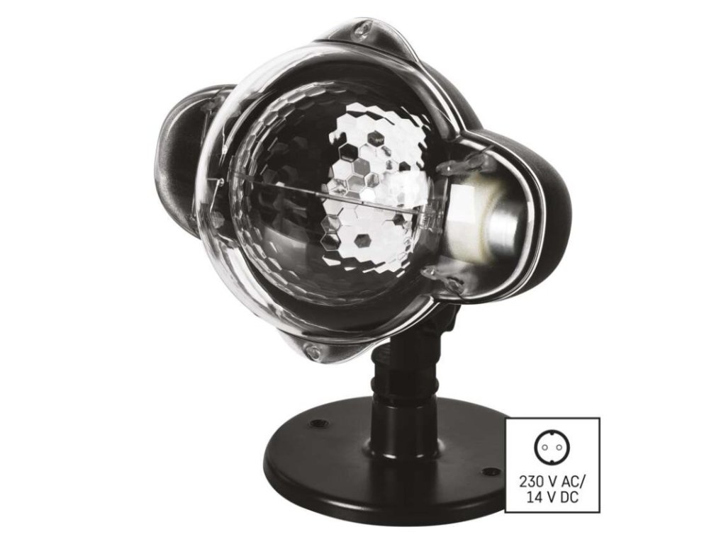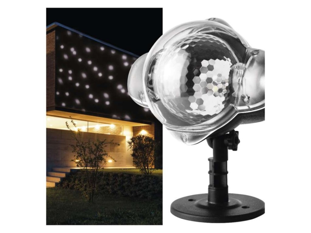 barva světla: studená bílá|časovač: ne|dálkový ovladač: ne|délka přívodu: 3 m|funkce: rotující světlo|krytí: IP44|materiál: plast|použití: venkovní i vnitřní|příkon: 4 W|prodejní obal: 1 ks, krabice|produkt: projektor|technologie: LED|typ napájení: síťový adaptér|vstupní napětí: 230 V~|výstupní napětí: 14 V DC|vzor: sníh|záruční doba: 2 roky|životnost: 10 000 hodin