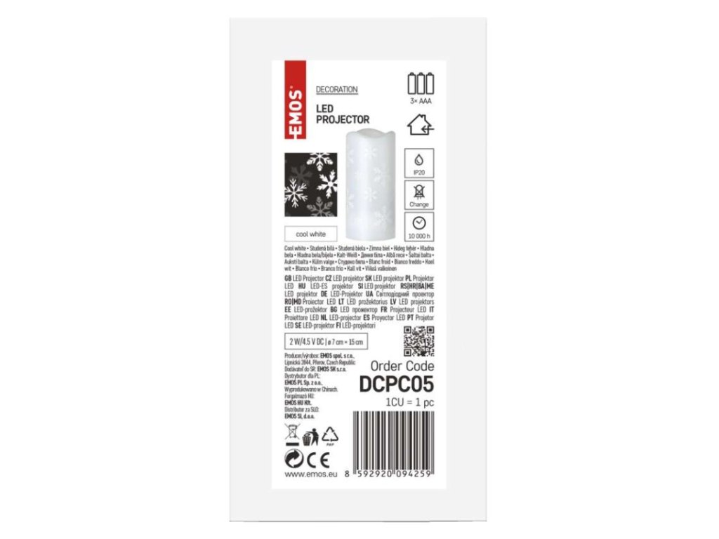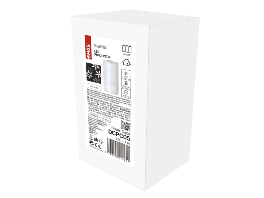 barva světla: studená bílá|časovač: ne|dálkový ovladač: ne|délka přívodu: neuvádí se|funkce: rotující světlo|krytí: IP20|materiál: plast|použití: vnitřní|příkon: 2 W|prodejní obal: 1 ks, krabice|produkt: projektor|technologie: LED|typ napájení: baterie 3× AAA (není součástí balení)|vstupní napětí: neuvádí se|výstupní napětí: 4,5 V DC|vzor: vločky|záruční doba: 2 roky|životnost: 10 000 hodin