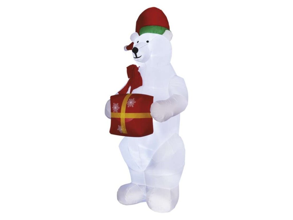LED lední medvěd s vánočním dárkem, nafukovací, 240 cm, venkovní i vnitřní, studená bílá