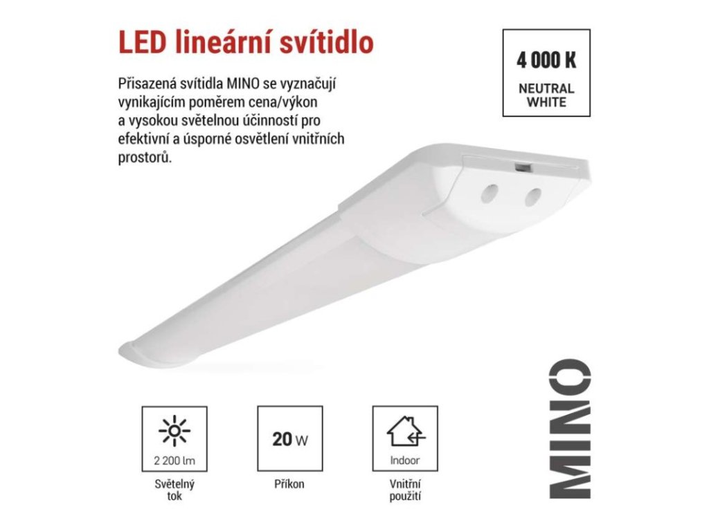 LED lineární svítidlo MINO 20W neutrální bílá