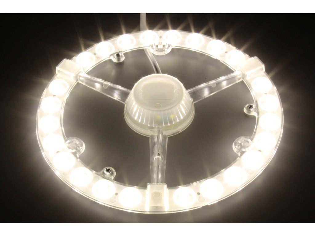 Magnetický LED modul je určený pro modernizaci stropních svítidel. Rychlá a snadná instalace spořívá v odstranění starých světelných zdrojů (například patic E27) a uchycením na kovový povrch svítidla třemi magnety, které jsou již integrované na LED modulu. Z bezpečnostních důvodů svěřte montáž odborníkovi.