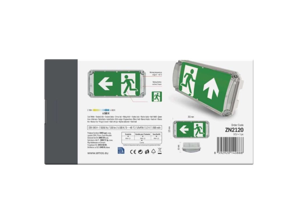 barva světla: studená bílá|barva těla: bílá|délka zálohy: 3 h|doba nabíjení baterie: ≥ 24 hodin|frekvence napájecího napětí: 50/60 Hz|kapacita baterie: 1 500 mAh|kontrolní vybavení: autotest|krytí: IP66|materiál difuzoru: plast (PC)|materiál těla: plast (PC)|napájecí napětí: 220–240 V AC|příkon na vstupu: 3 W max.|prodejní obal: 1 ks, krabice|provozní režim: trvalý/photovostní|rozměr: 252 × 123 × 65 mm|rozsah pracovních teplot: 0 °C až +45 °C|stupeň ochrany proti mechanickým nárazům: IK10|světelný tok: 150 lm|teplota chromatičnosti: 6 500 K|třída ochrany: II|typ baterie: LiFePo4|typ montáže: přisazená|účiník: >0,5|vstupní proud: 75 mA|výstupní napětí: neuvádí se|výstupní napětí v nouzovém režimu: neuvádí se|výstupní výkon v nouzovém stavu: 1 W|záruční doba: 4 roky|záruka na baterii: 2 roky|zdroj světla: LED