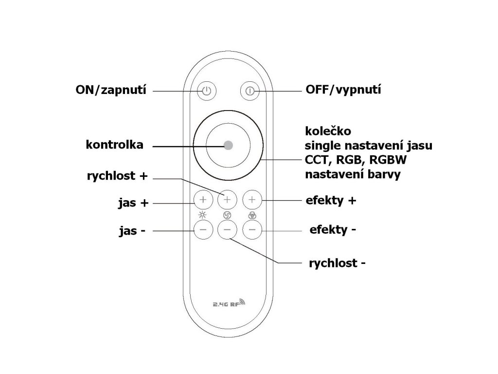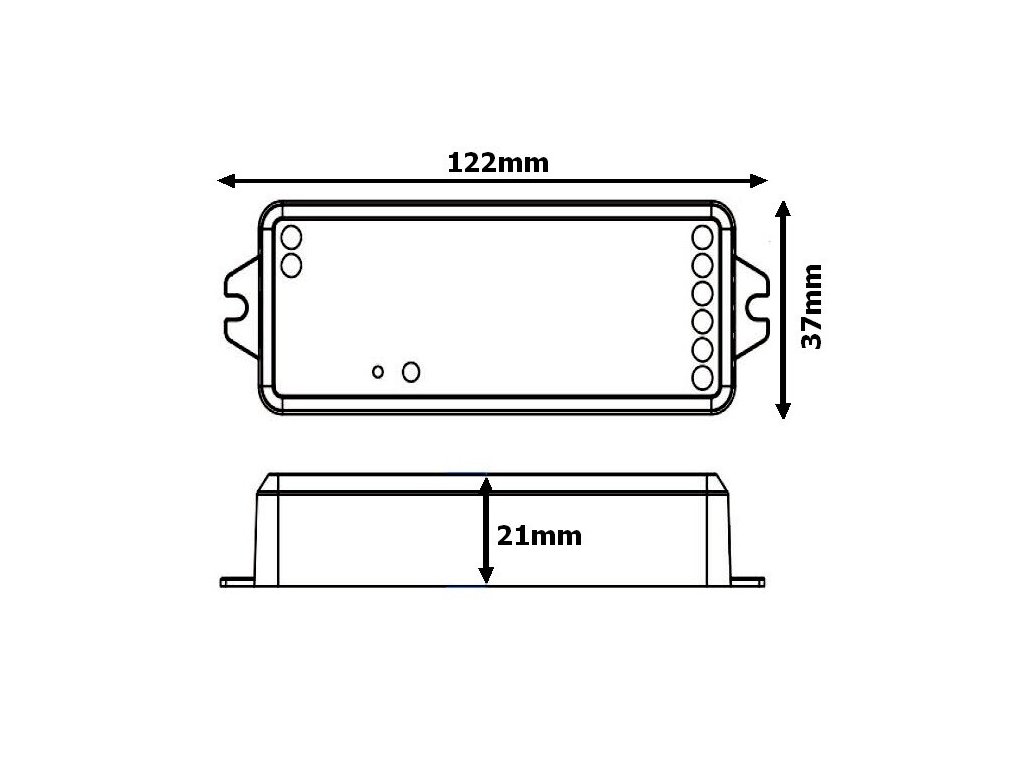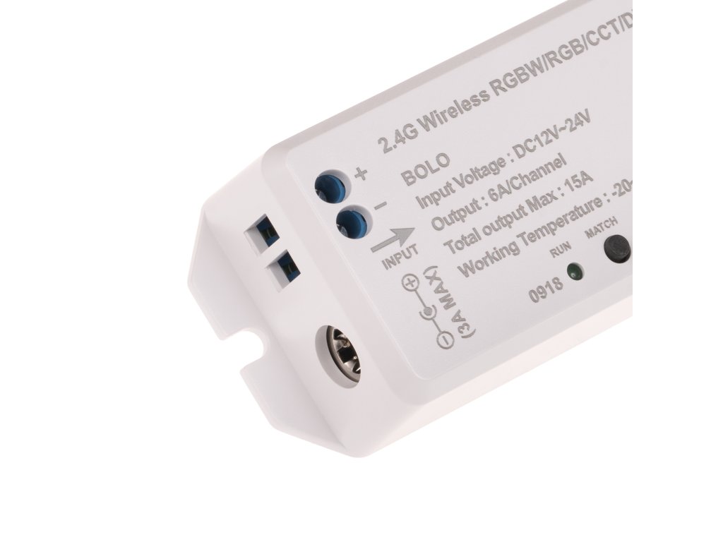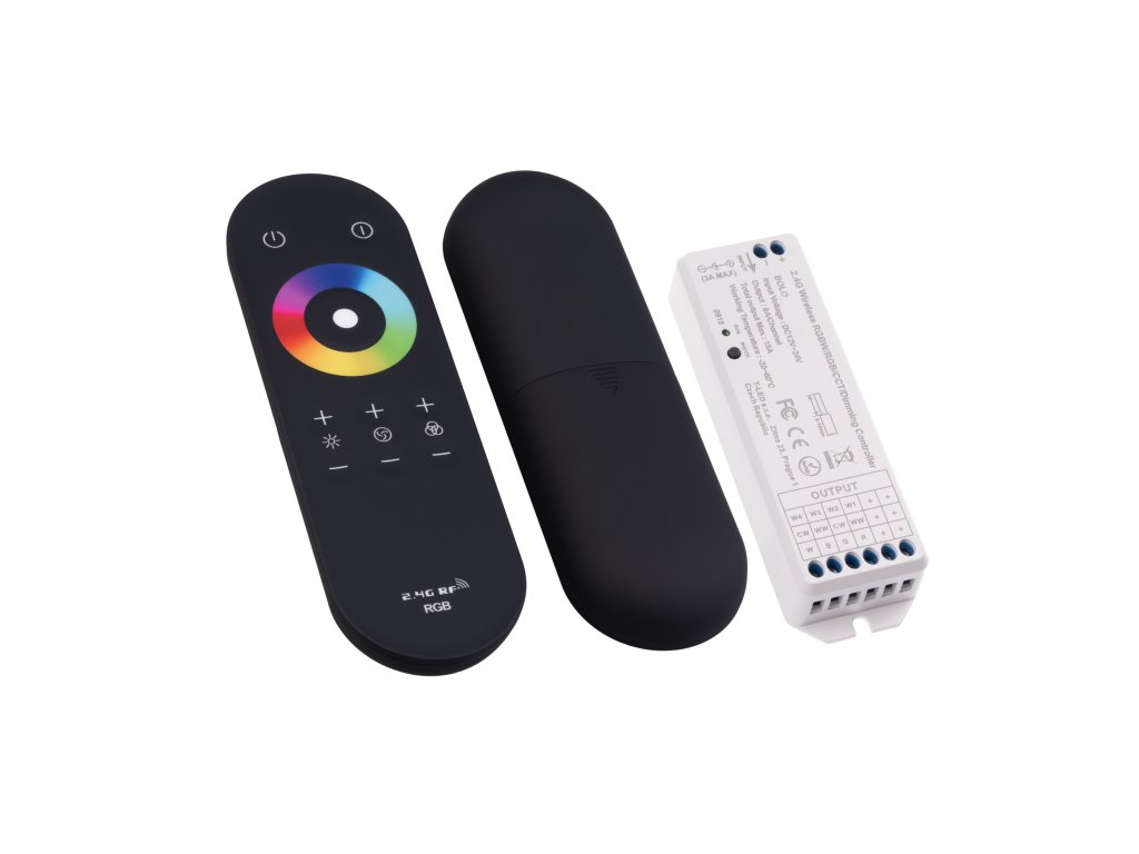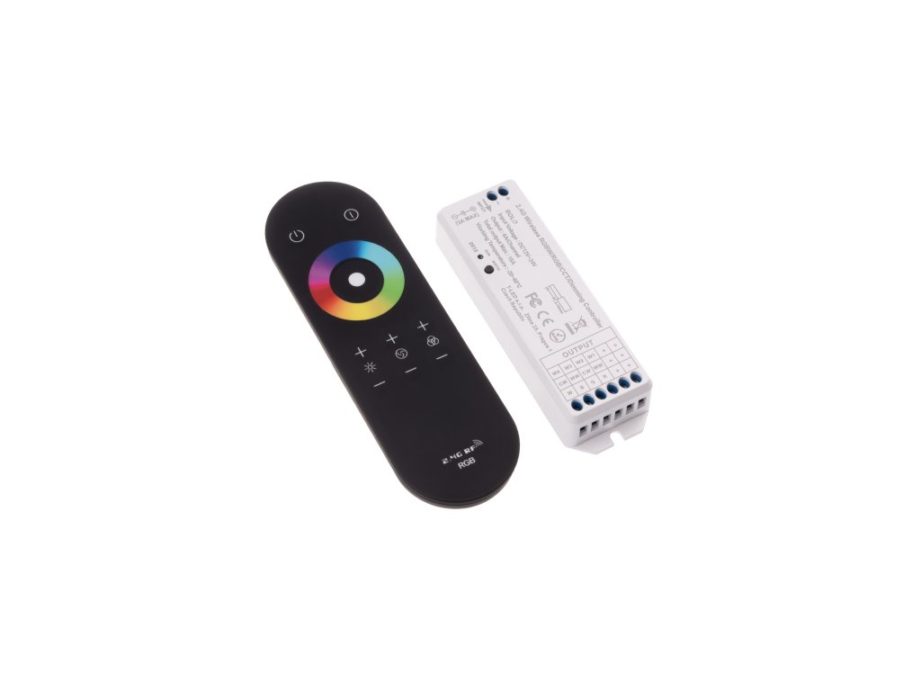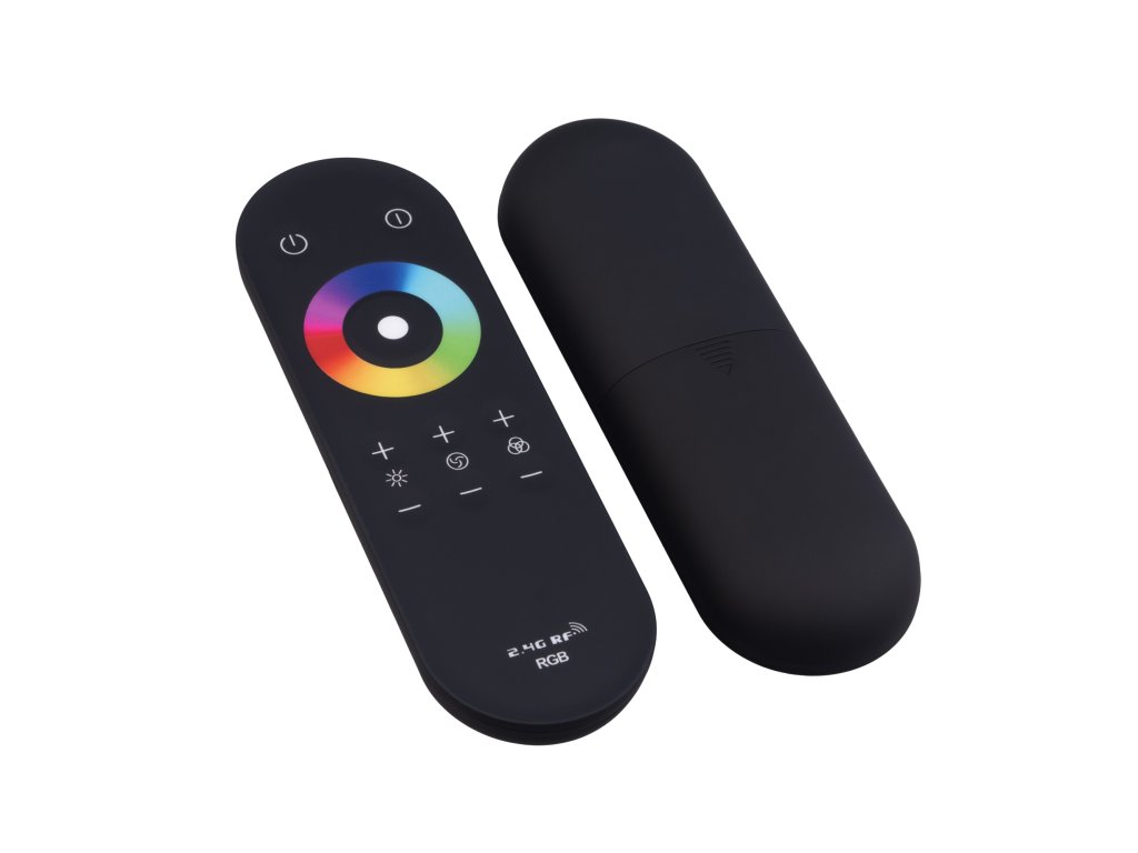 Tento jednokanálový RF stmívač a vypínač umožňuje pohodlné dálkové ovládání i ovládání barvy a jasu RGB LED produktů na 12-24V DC jako jsou RGB LED pásky, RGB LED moduly a další. Díky radiofrekvenční technologii není nutná přímá viditelnost mezi ovladačem a přijímačem, což umožňuje skrytí přijímače za zdí, sádrokartonem nebo ve skříni.