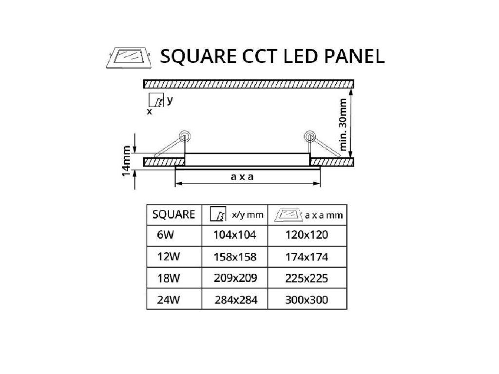 Vestavný čtvercový CCT LED panel 24V 12W určený pro instalaci do podhledu. Díky bočnímu nasvětlování nejsou jednotlivé LEDky při rozsvícení viditelné a lze použít i ultratenký design. LED panel díky CCT provedení Vám umožňuje nastavit barvu bílého světla v rozmezí od 2000K do 6000K a svítit můžete bílým světlem od teplých žlutých odstínů bílé přes denní až po studené bílé světlo. Napětí 24V umožňuje tyto LED panely taktéž instalovat na místa, kde potřebujete nízké napětí. Zároveň 24V napětí je často využíváno v chytrých domácnostech jako je LOXONE či jiné obdobné systémy.