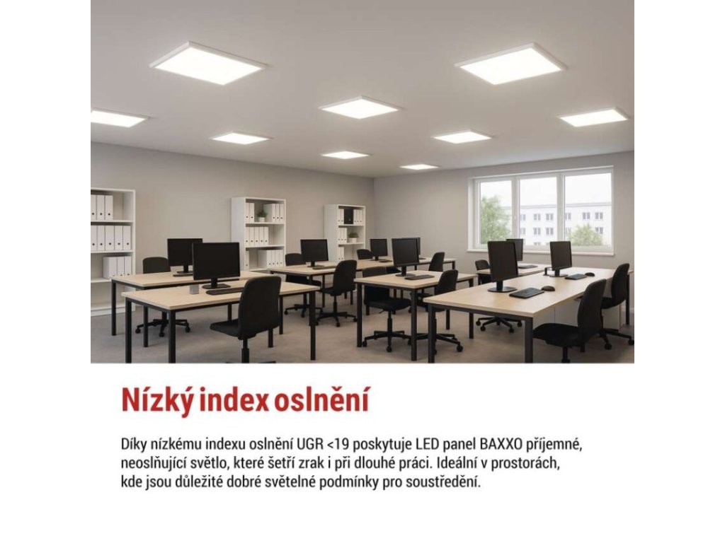 LED panel BAXXO 60×60, čtvercový přisazený bílý, 36W neutr. bílá UGR