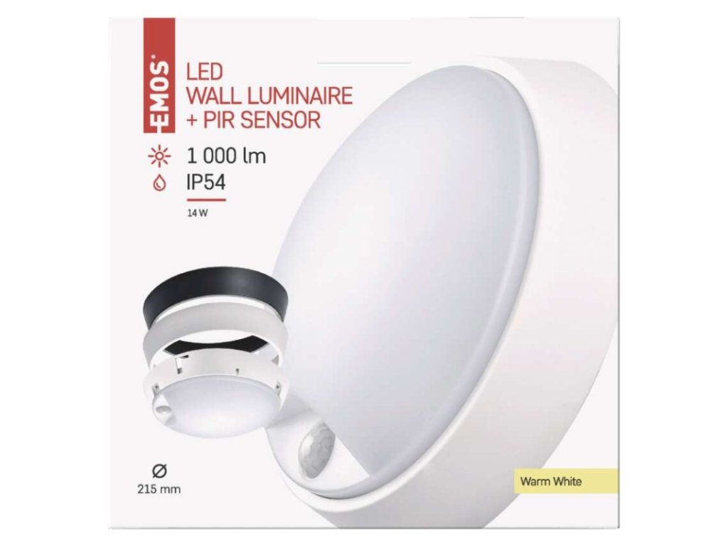 barva světla: teplá bílá|barva těla: černá/bílá|dálkový ovladač: ne|do chodby a na schodiště: ano|do dílny a garáže: ano|do kanceláře: ne|do koupelny: ano|do kuchyně: ne|do obýváku, ložnice a dětského pokoje: ne|dosah senzoru: 10 m|flicker-free: ano|frekvence: 50/60 Hz|index podání barev (CRI): Ra > 80|kategorie: CLASSIC|krytí: IP54|materiál difuzoru: plast (PC)|materiál LGP: neuvádí se|materiál těla: plast (PC)|montážní otvor: neuvádí se|možnost stmívání: ne|náhrada za žárovku: 75 W|napětí: 220–240 V|na zahradu a balkon: ano|pohybový senzor: PIR|příkon: 14 W|prodejní obal: 1 ks, krabice|proud: 120 mA|řada: ZURI|rozměr: průměr 215 × 80 mm|světelná účinnost: 71 lm/W|světelný tok: 1 000 lm|teplota chromatičnosti: 3 000 K|tvar: kruh|typ difuzoru: mléčný|typ svítidla: klasické svítidlo|účiník: > 0,5|UGR<: neuvádí se|úhel vyzařování: 120°|umístění: nástěnné|výstupní proud ze zdroje: neuvádí se|záruční doba: 2 roky|zdroj světla: LED|životnost: 25 000 hodin|způsob montáže: přisazené