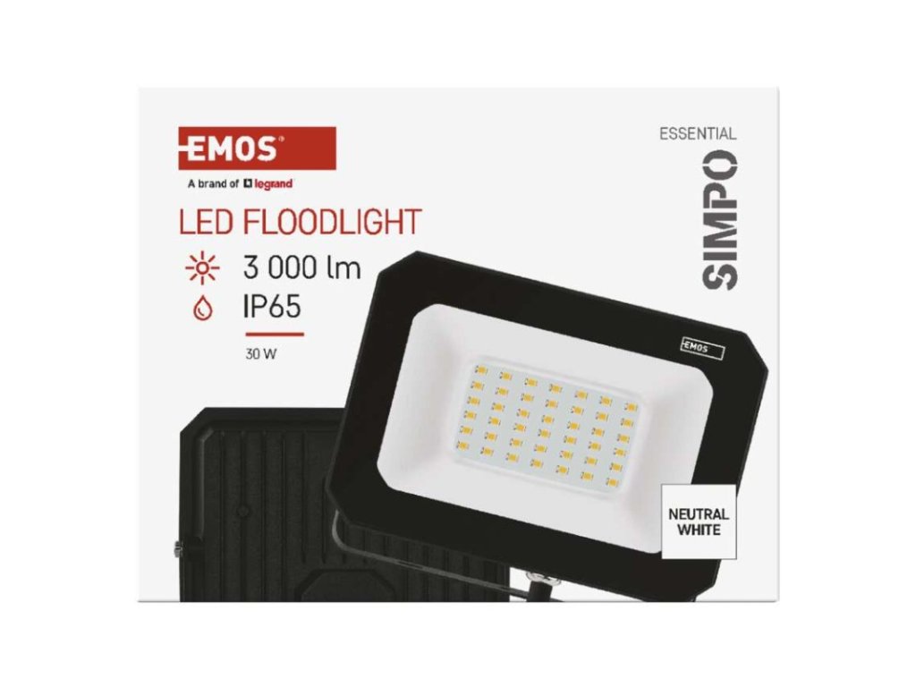 akumulátor: ne|barva: černá|barva světla: neutrální bílá|délka přívodního kabelu: 20 cm|doba svícení na AKU: neuvádí se|dosah PIR senzoru: nemá PIR|energetická třída použitého světelného zdroje: –|flicker-free: ano|frekvence: 50/60 Hz|index podání barev (CRI): Ra > 80|kategorie: ESSENTIAL|krytí: IP65|materiál difuzoru: sklo|materiál přívodního kabelu: guma|materiál těla: hliník|napájení: ze sítě|napětí: 220–240 V~|PIR senzor: ne|počet průchozích zásuvek: neuvádí se|použití: závěsná montáž|příkon: 30 W|prodejní obal: 1 ks, krabice|proud: 130 mA|řada: SIMPO|rozměr: 143 × 113 ×25 mm|rozsah pracovní teploty: -20 °C až +40 °C|stmívání: ne|stupeň ochrany proti mechanickým nárazům: neuvádí se|světelná účinnost: 100 lm/W|světelný tok: 3 000 lm|teplota chromatičnosti: 4 000 K|typ přívodního kabelu: H05RN-F|typ průchozích zásuvek: neuvádí se|účiník: > 0,9|úhel vyzařování: 120°|záruční doba: 2 roky|zdroj světla: LED|životnost: 25 000 hodin|zkušební žárovka součástí balení: ne
