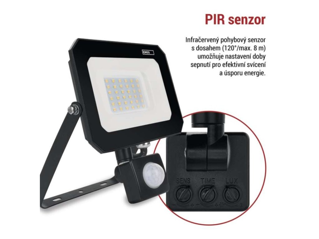 LED reflektor SIMPO s pohybovým čidlem, 30 W, černý, neutrální bílá