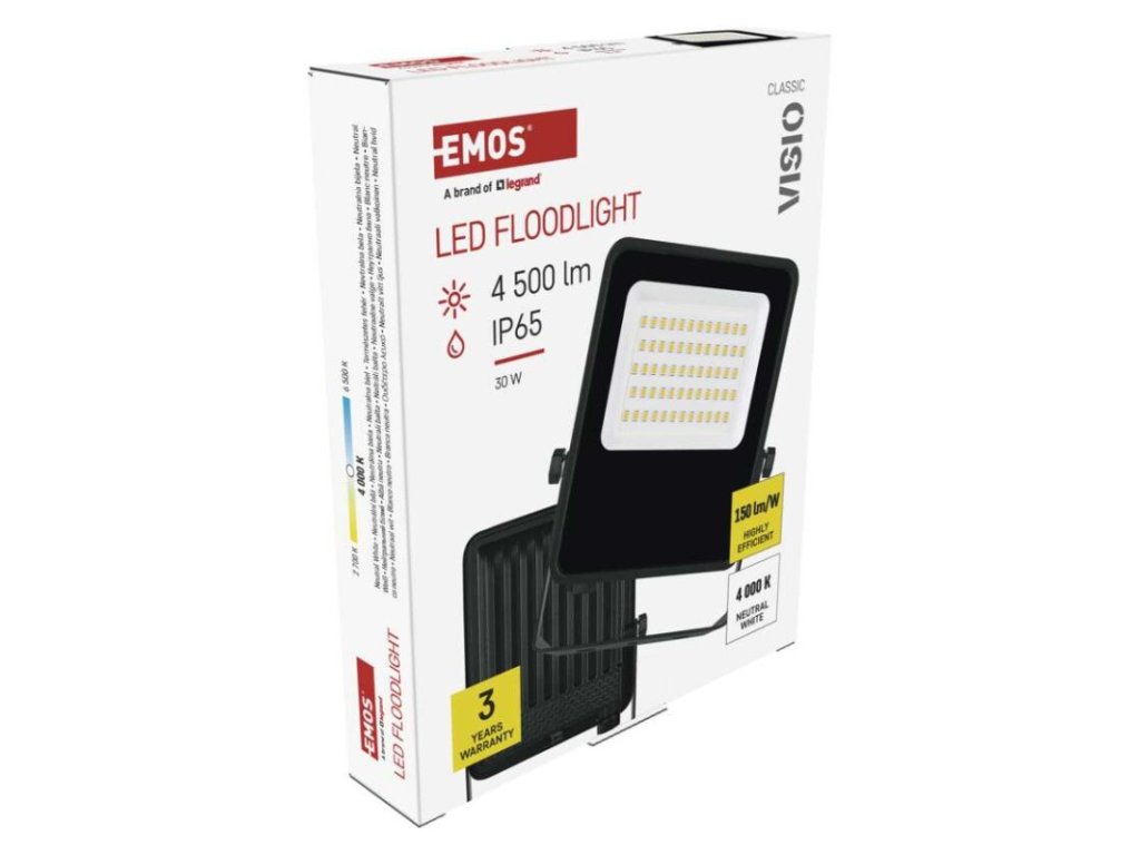 akumulátor: ne|barva: černá|barva světla: neutrální bílá|délka přívodního kabelu: 25 cm|doba svícení na AKU: –|dosah PIR senzoru: nemá PIR|energetická třída použitého světelného zdroje: –|flicker-free: ano|frekvence: 50/60 Hz|index podání barev (CRI): Ra > 80|kategorie: CLASSIC|krytí: IP65|materiál difuzoru: sklo|materiál přívodního kabelu: guma|materiál těla: hliník|napájení: ze sítě|napětí: 220–240 V~|PIR senzor: ne|počet průchozích zásuvek: –|použití: povrchová montáž|příkon: 30 W|prodejní obal: 1 ks, krabice|proud: 135 mA|řada: VISIO|rozměr: 163 × 135 × 22 mm|rozsah pracovní teploty: -20 °C až +40 °C|stmívání: ne|stupeň ochrany proti mechanickým nárazům: IK06|světelná účinnost: 150 lm/W|světelný tok: 4 500 lm|teplota chromatičnosti: 4 000 K|typ přívodního kabelu: H05RN-F|typ průchozích zásuvek: –|typ stmívání: –|účiník: > 0,9|úhel vyzařování: 110°|záruční doba: 3 roky|zdroj světla: LED|životnost: 36 000 hodin|zkušební žárovka součástí balení: ne