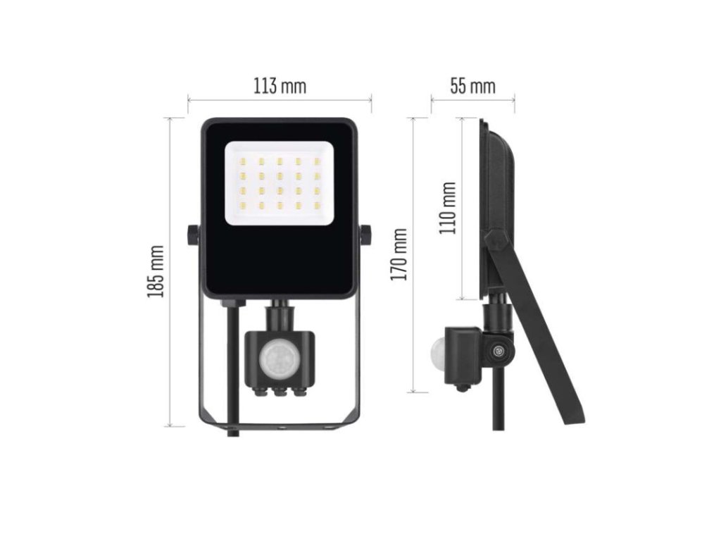 LED reflektor VISIO s pohybovým čidlem, 10 W, černý, neutrální bílá