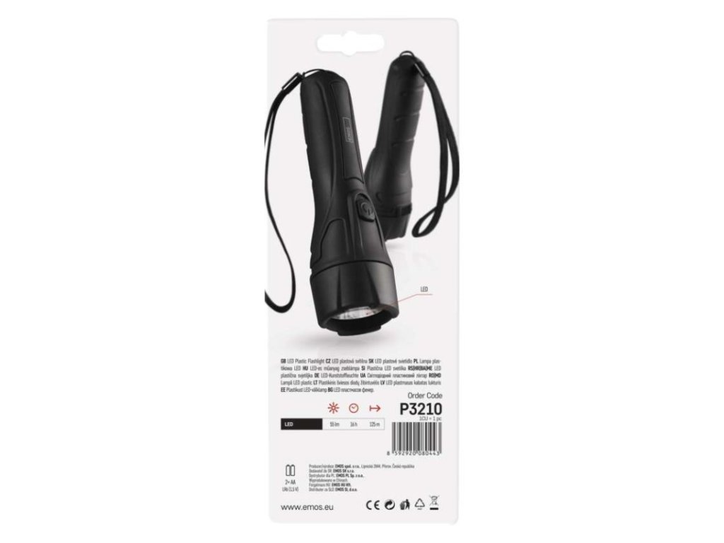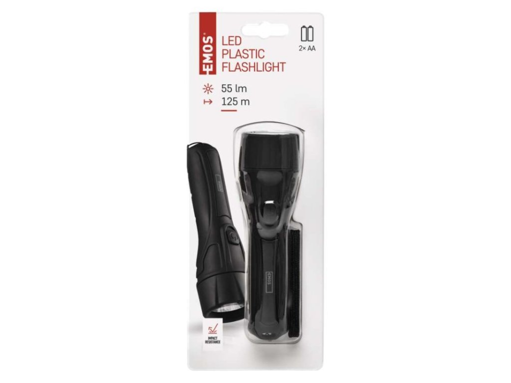 barva: černá|baterie součástí balení: ne|doba nabíjení: neuvádí se|doba svícení: 16 h|doba svícení detail: LED 100 % – 16 h|dosvit: LED 100 % – 125 m|fokus: ne|hmotnost: 73 g|LED indikace nabíjení: neuvádí se|LED indikace stavu akumulátoru: neuvádí se|materiál: plast|maximální dosvit: 125 m|maximální světelný tok: 55 lm|nabíjecí: ne|napájení: 2× AA|nárazuvzdornost: ano|počet režimů svícení: 1|příslušenství: neuvádí se|prodejní obal: 1 ks, papírový blistr|režimy svícení: LED 100 %|rozměr: 155 × 45 × 45 mm|speciální funkce: neuvádí se|světelný tok: LED 100 % – 55 lm|typ baterie: LR6 (1,5 V)|typ napájecího konektoru: neuvádí se|voděodolnost: ne|vybavení: poutko|záruční doba: 2 roky|zdroj světla: LED|značka: EMOS