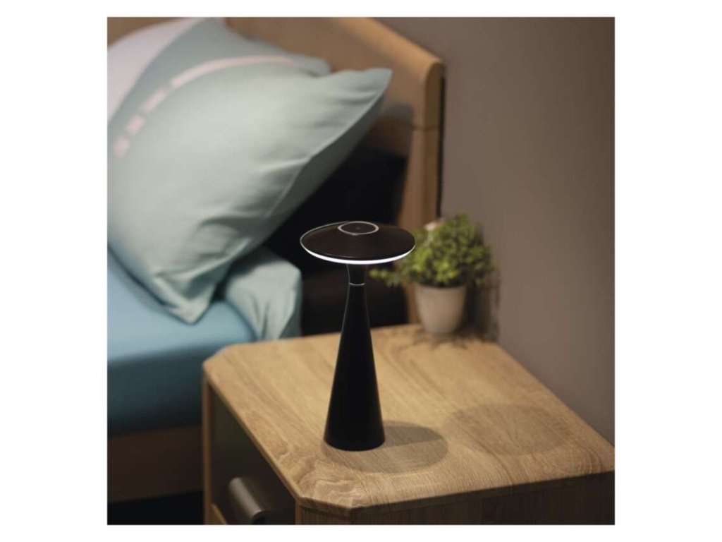 barva: černá|barva světla: teplá/neutrální/studená bílá|činitel stárnutí: 0,96|čip LED: SMD|délka přívodního kabelu: 1,5 m|energetická třída: neuvádí se|energetická třída (od 1.9.2021): neuvádí se|index podání barev (CRI): Ra >80|integrovaná nabíjecí baterie: ano|krytí: IP44|materiál: ABS plast|max. výkon: neuvádí se|napájecí zdroj: USB|napájecí zdroj součástí balení: ne|napětí: 3,7 V|obsah rtuti: neuvádí se|patice (uchycení žárovky): neuvádí se|počet LED: neuvádí se|počet spínacích cyklů: neuvádí se|příkon: 2,2 W|prodejní obal: 1 ks, krabice|rozměr: 270 × 130 mm|rychlost náběhu na 100 %: neuvádí se|stmívání: ano|světelný tok: 180 lm|teplota chromatičnosti: 3 000/4 000/5 000 K|typ napájení: USB|účiník: neuvádí se|USB port: ano|životnost: neuvádí se