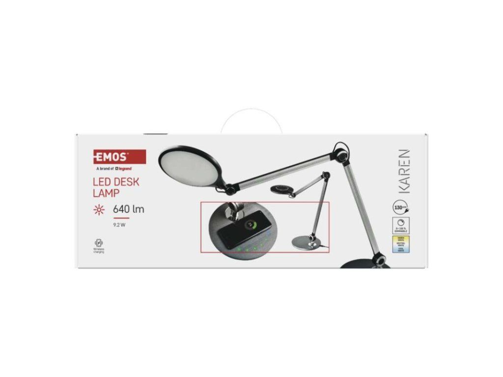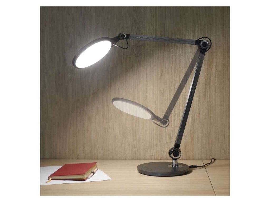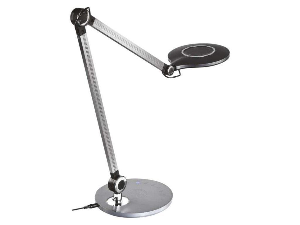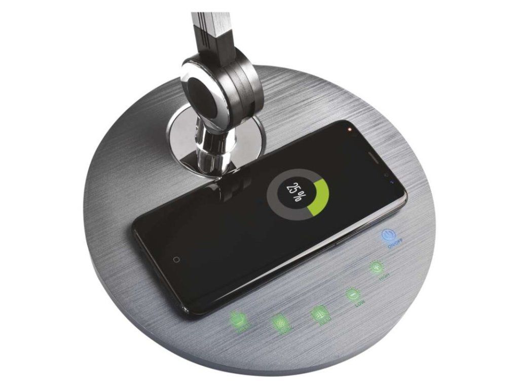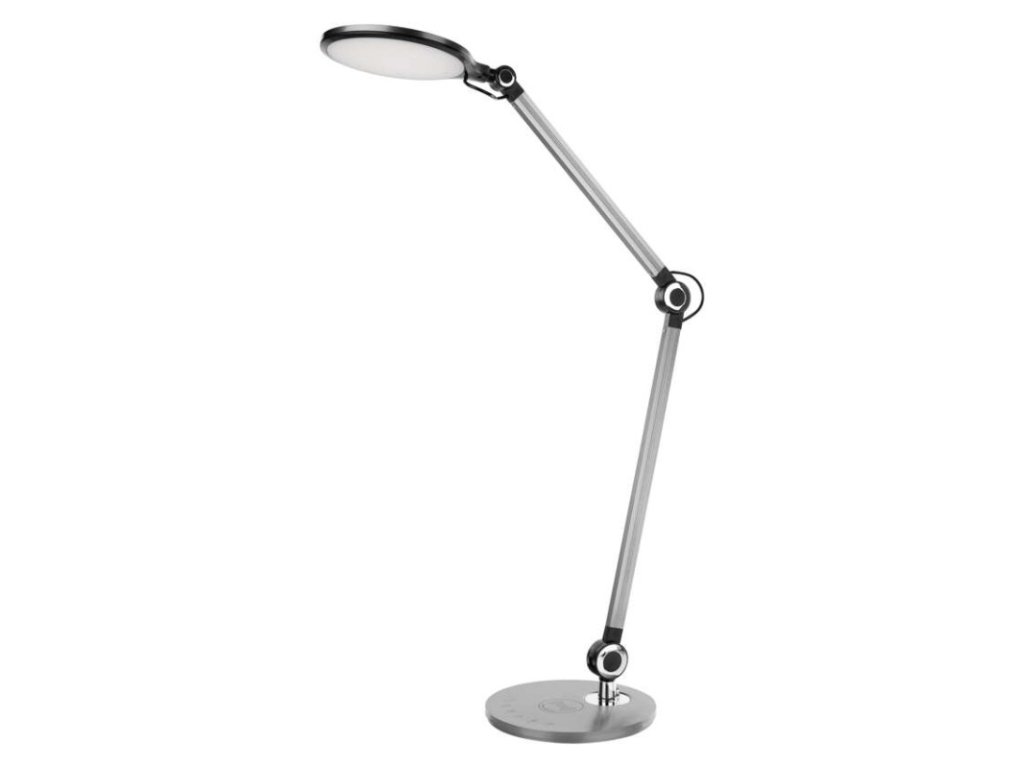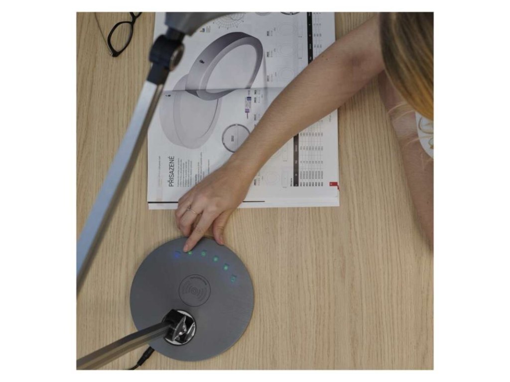barva: tmavě šedá|barva světla: teplá/neutrální/studená bílá|činitel stárnutí: neuvádí se|čip LED: neuvádí se|délka přívodního kabelu: 1,3 m|energetická třída: E|energetická třída (od 1.9.2021): neuvádí se|index podání barev (CRI): Ra >80|integrovaná nabíjecí baterie: ne|krytí: IP20|materiál: hliník/plast|max. výkon: neuvádí se|napájecí zdroj: 13,5 V/1 500 mA|napájecí zdroj součástí balení: ano|napětí: 220–240 V|obsah rtuti: neuvádí se|patice (uchycení žárovky): neuvádí se|počet LED: neuvádí se|počet spínacích cyklů: neuvádí se|příkon: 9,2 W|prodejní obal: 1 ks, krabice|rozměr: 200 × 550 × 700 mm|rychlost náběhu na 100 %: neuvádí se|stmívání: ano|světelný tok: 640 lm|teplota chromatičnosti: 3 000/4 000/6 500 K|typ napájení: síť|účiník: neuvádí se|USB port: ne + bezdrátové nabíjení|životnost: neuvádí se