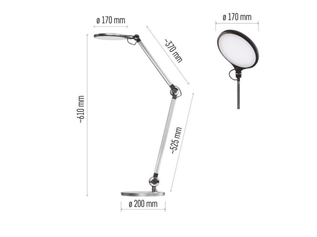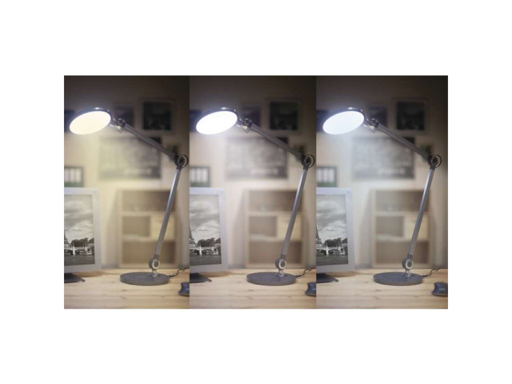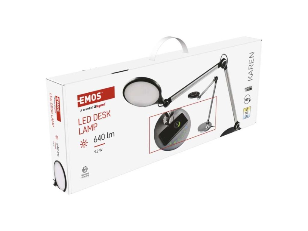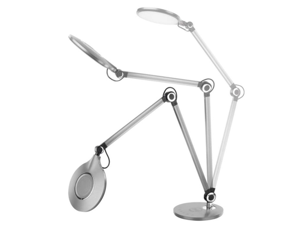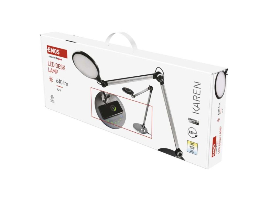 barva: tmavě šedá|barva světla: teplá/neutrální/studená bílá|činitel stárnutí: neuvádí se|čip LED: neuvádí se|délka přívodního kabelu: 1,3 m|energetická třída: E|energetická třída (od 1.9.2021): neuvádí se|index podání barev (CRI): Ra >80|integrovaná nabíjecí baterie: ne|krytí: IP20|materiál: hliník/plast|max. výkon: neuvádí se|napájecí zdroj: 13,5 V/1 500 mA|napájecí zdroj součástí balení: ano|napětí: 220–240 V|obsah rtuti: neuvádí se|patice (uchycení žárovky): neuvádí se|počet LED: neuvádí se|počet spínacích cyklů: neuvádí se|příkon: 9,2 W|prodejní obal: 1 ks, krabice|rozměr: 200 × 550 × 700 mm|rychlost náběhu na 100 %: neuvádí se|stmívání: ano|světelný tok: 640 lm|teplota chromatičnosti: 3 000/4 000/6 500 K|typ napájení: síť|účiník: neuvádí se|USB port: ne + bezdrátové nabíjení|životnost: neuvádí se
