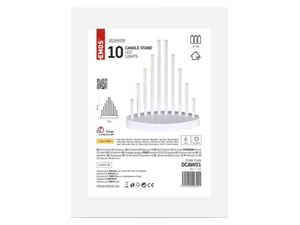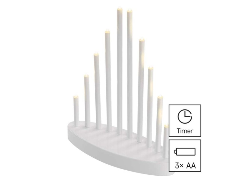barva drátu: neuvádí se|barva světla: teplá bílá|časovač: ano|dálkový ovladač: ne|délka přívodu: neuvádí se|krytí: IP20|materiál: plast|počet LED: 10|použití: vnitřní|příkon: 0,6 W|prodejní obal: 1 ks, krabice|produkt: svícen|rozměr: 20 × 24,5 cm|typ napájení: baterie 3× AA (není součástí balení)|vstupní napětí: neuvádí se|výstupní napětí: 4,5 V DC|záruční doba: 2 roky|zdroj svícení: LED|životnost: 10 000 hodin