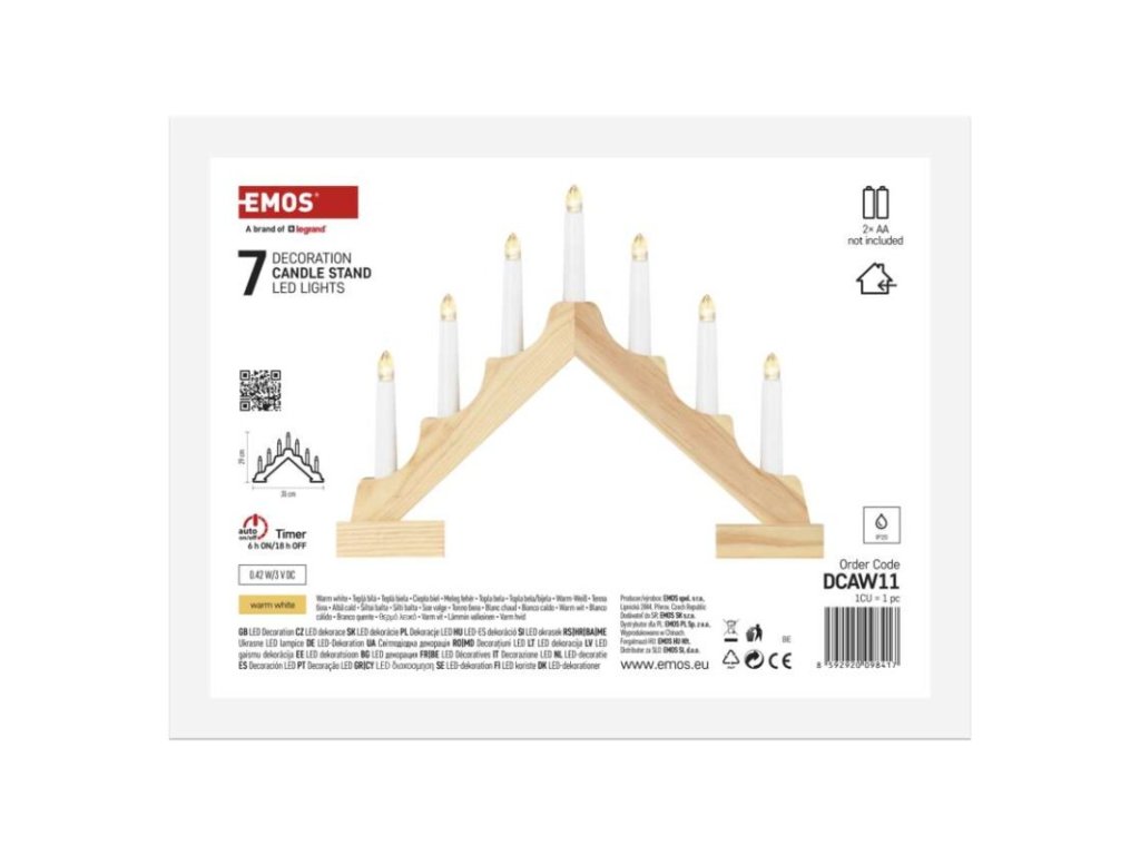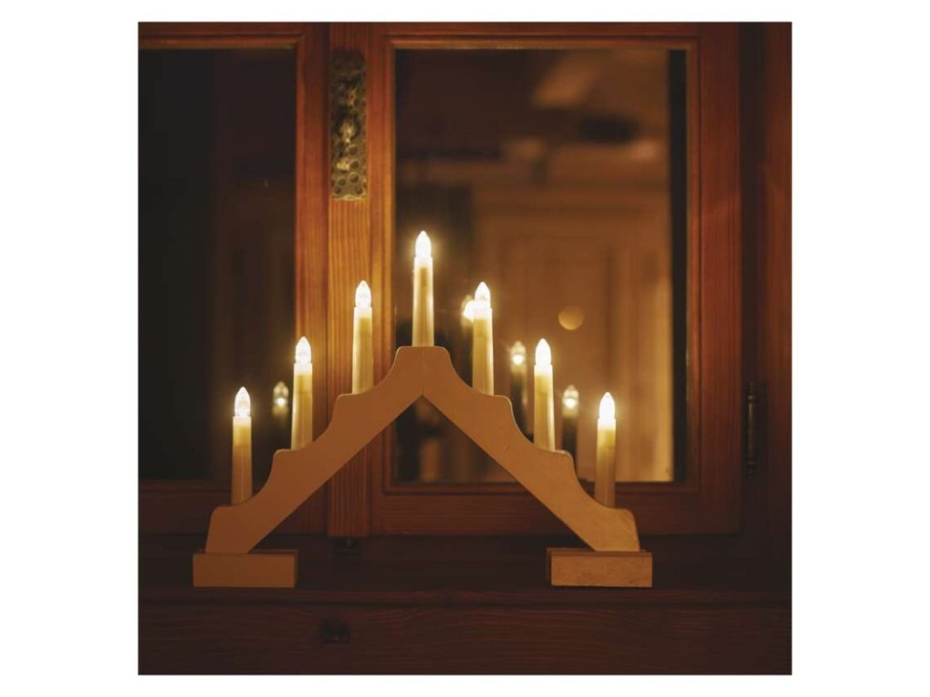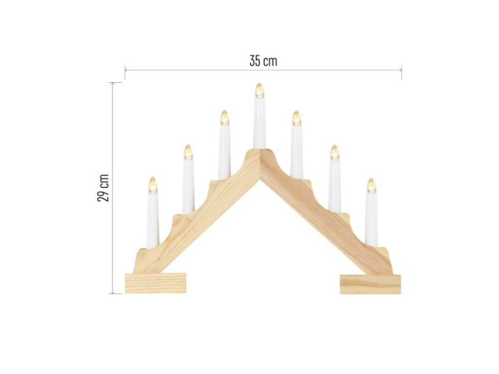 barva drátu: neuvádí se|barva světla: teplá bílá|časovač: ano|dálkový ovladač: ne|délka přívodu: neuvádí se|krytí: IP20|materiál: dřevo|počet LED: 7|použití: vnitřní|příkon: 0,42 W|prodejní obal: 1 ks, krabice|produkt: svícen|rozměr: 35 × 29 cm|typ napájení: baterie 2× AA (není součástí balení)|vstupní napětí: neuvádí se|výstupní napětí: 3 V DC|záruční doba: 2 roky|zdroj svícení: LED|životnost: 10 000 hodin