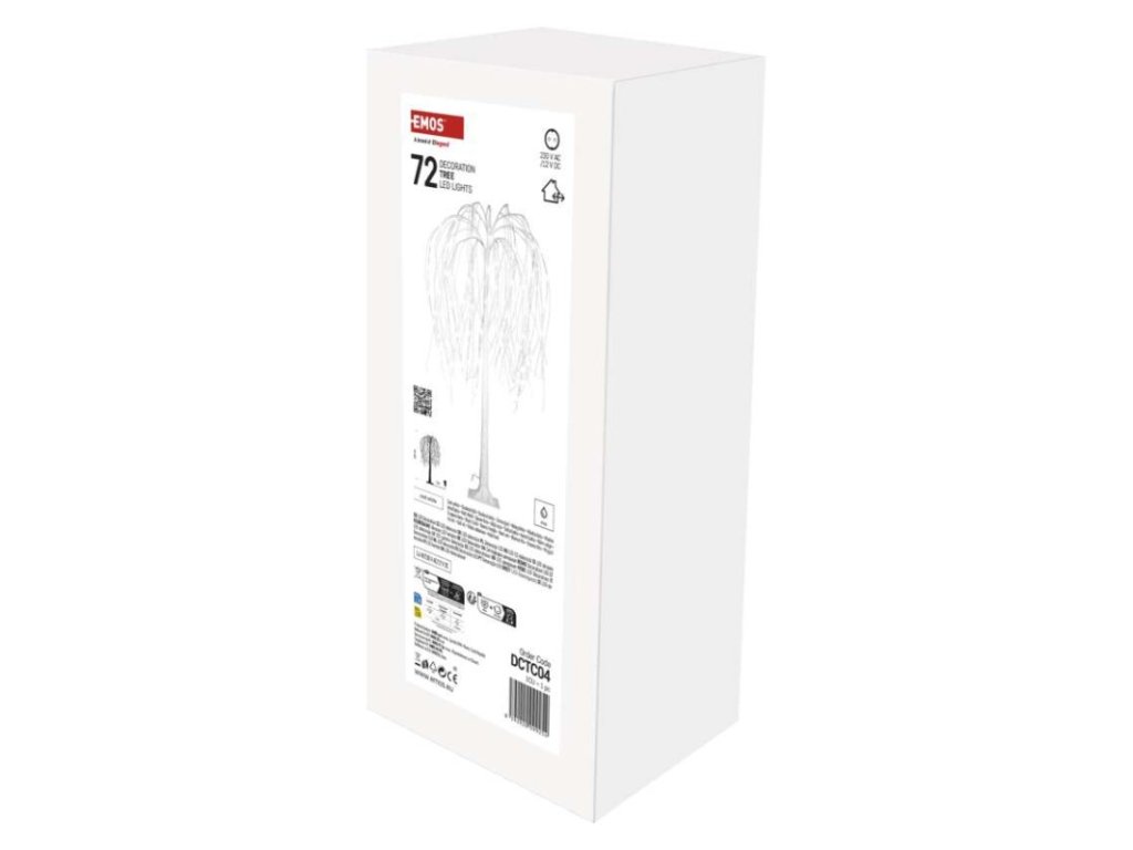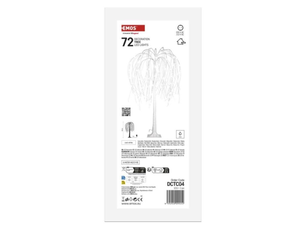 barva drátu: bílá|barva světla: studená bílá|časovač: ne|dálkový ovladač: ne|délka přívodu: 3 m|krytí: IP44|materiál: plast/kov|počet LED: 72|použití: venkovní i vnitřní|příkon: 3,6 W|prodejní obal: 1 ks, krabice|produkt: stromek|rozměr: 120 cm|typ napájení: síťový adaptér|vstupní napětí: 230 V AC|výstupní napětí: 12 V DC|záruční doba: 2 roky|zdroj svícení: LED|životnost: 10 000 hodin