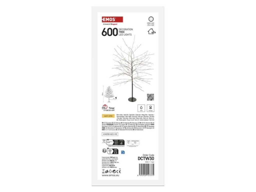 barva drátu: černá|barva světla: teplá bílá|časovač: ano|dálkový ovladač: ne|délka přívodu: 5 m|krytí: IP44|materiál: kov|počet LED: 600|použití: venkovní i vnitřní|příkon: 3,8 W|prodejní obal: 1 ks, krabice|produkt: stromek|rozměr: 120 cm|typ napájení: síťový adaptér|vstupní napětí: 230 V AC|výstupní napětí: 31 V DC|záruční doba: 2 roky|zdroj svícení: LED|životnost: 10 000 hodin