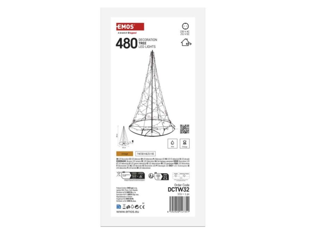barva drátu: černá|barva světla: vintage|časovač: ne|dálkový ovladač: ne|délka přívodu: 5 m|krytí: IP44|materiál: kov|počet LED: 480|použití: venkovní i vnitřní|příkon: 7 W|prodejní obal: 1 ks, krabice|produkt: stromek|rozměr: 180 cm|typ napájení: síťový adaptér|vstupní napětí: 230 V AC|výstupní napětí: 31 V DC|záruční doba: 2 roky|zdroj svícení: LED|životnost: 10 000 hodin