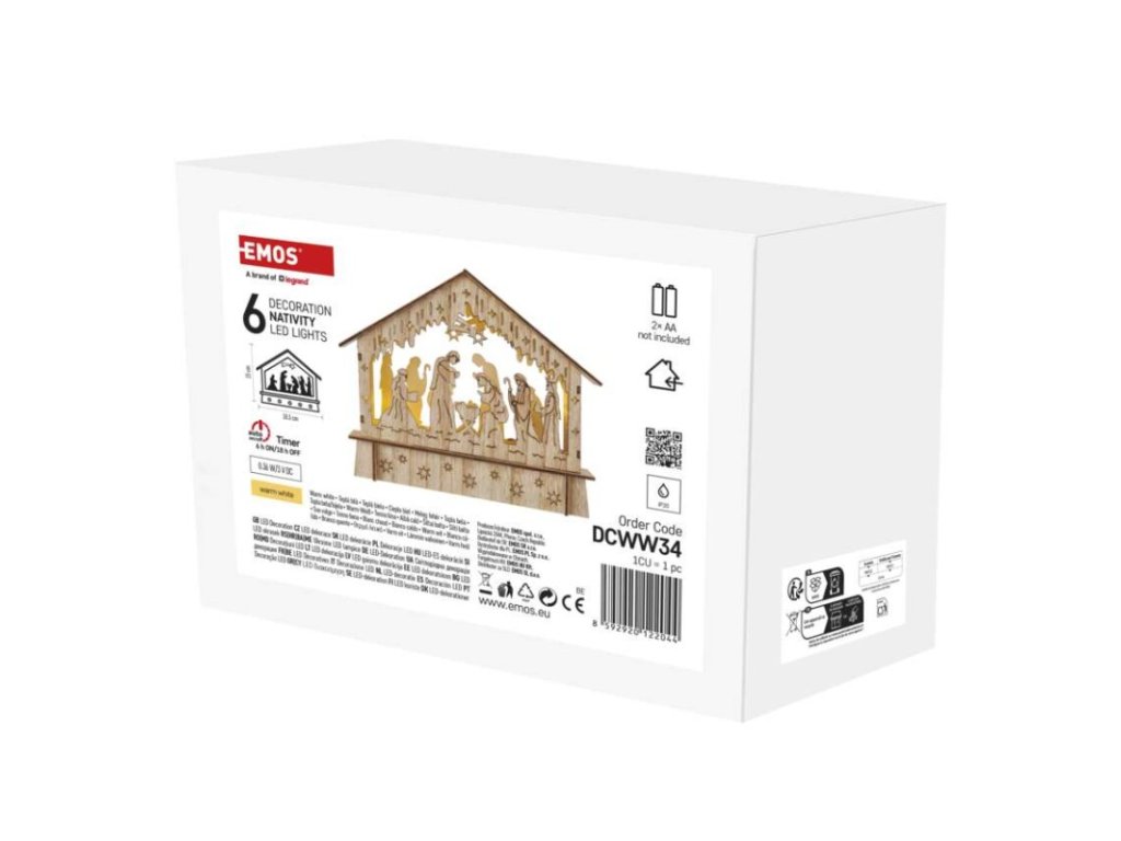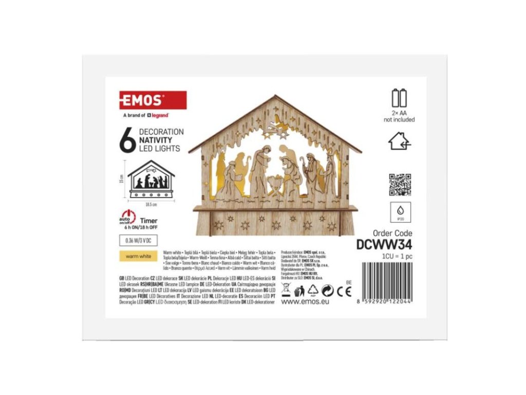 barva drátu: neuvádí se|barva světla: teplá bílá|časovač: ano|dálkový ovladač: ne|délka přívodu: neuvádí se|krytí: IP20|materiál: neuvádí se|počet LED: 6|použití: vnitřní|příkon: 0,36 W|prodejní obal: 1 ks, krabice|produkt: betlém|rozměr: 18,5 × 5 × 15 cm|typ napájení: baterie 2× AA (není součástí balení)|vstupní napětí: neuvádí se|výstupní napětí: 3 V DC|záruční doba: 2 roky|zdroj svícení: LED|životnost: 10 000 hodin