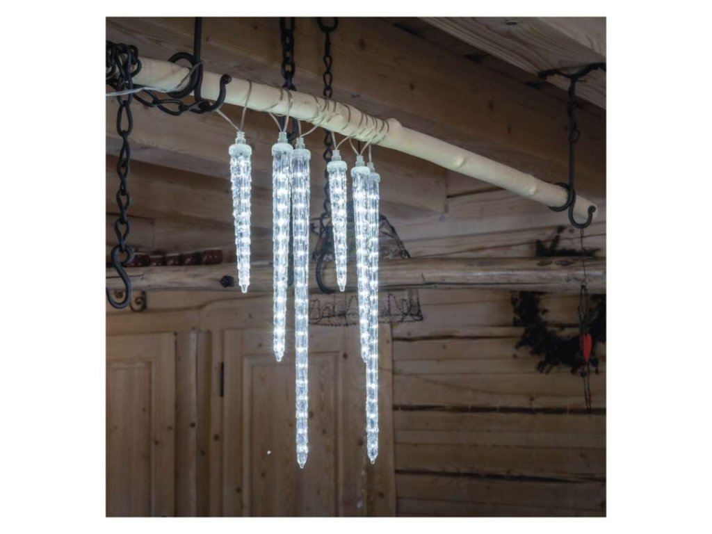 LED vánoční girlanda – rampouchy, 6 ks, 2 m, venkovní i vnitřní, studená bílá