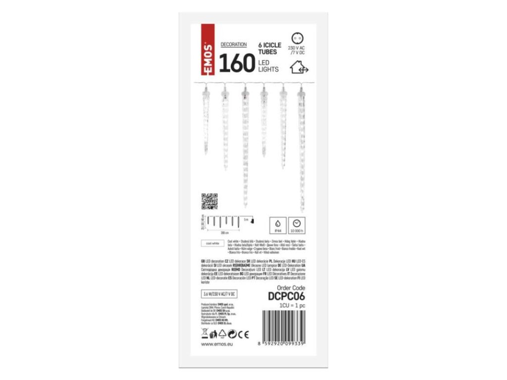barva drátu: transparentní|barva světla: studená bílá|časovač: ne|dálkový ovladač: ne|délka přívodu: 5 m|krytí: IP44|materiál: plast|počet LED: 160|použití: venkovní i vnitřní|příkon: 3,6 W|prodejní obal: 1 ks, krabice|produkt: girlanda|rozměr: 40/30/25 cm|typ napájení: síťový adaptér|vstupní napětí: 230 V AC|výstupní napětí: 7 V DC|záruční doba: 2 roky|zdroj svícení: LED|životnost: 10 000 hodin