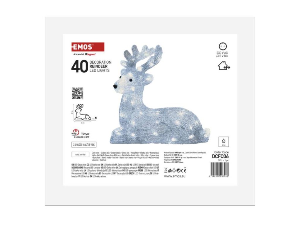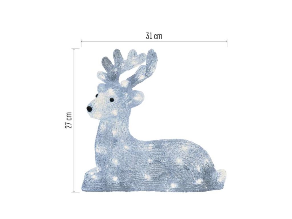 LED vánoční jelínek, 27 cm, venkovní i vnitřní, studená bílá, časovač