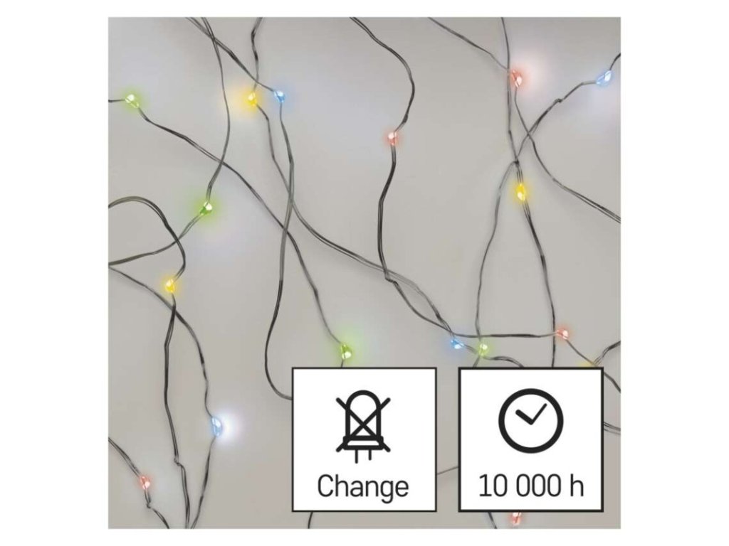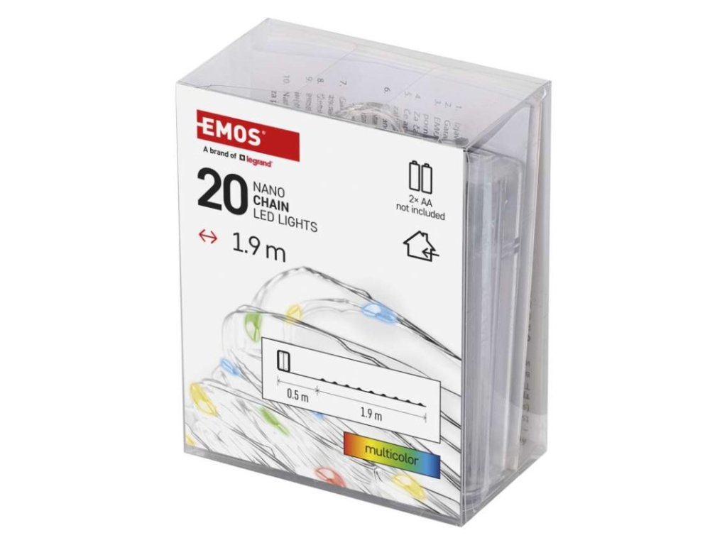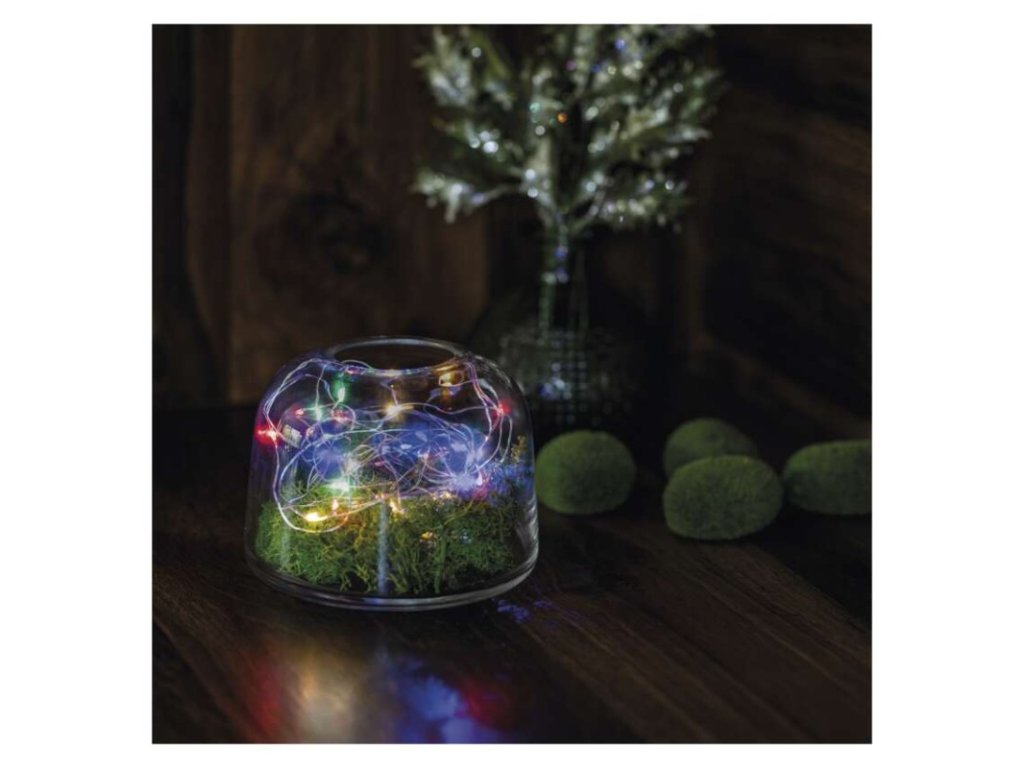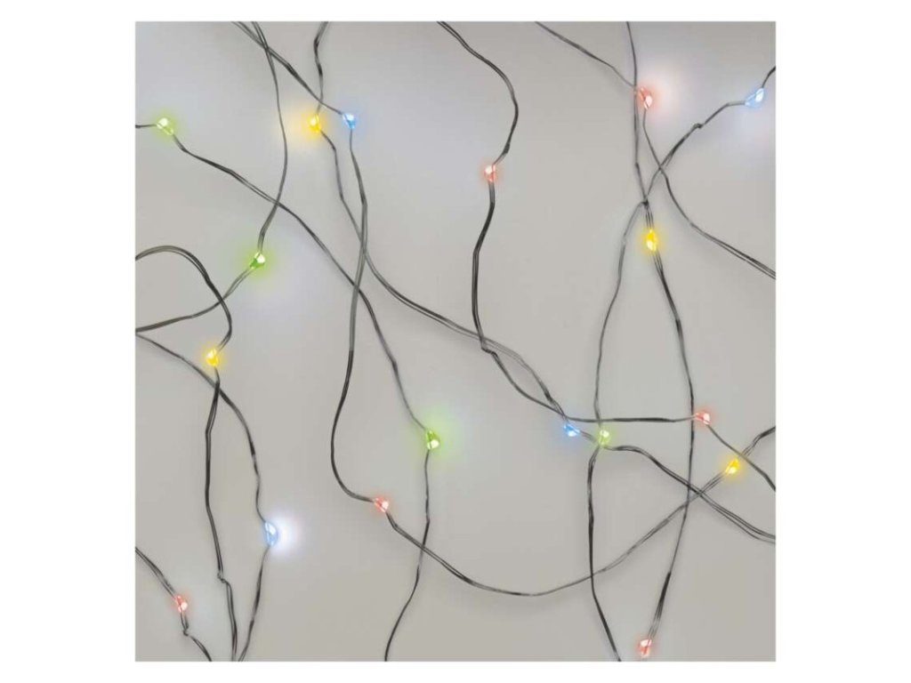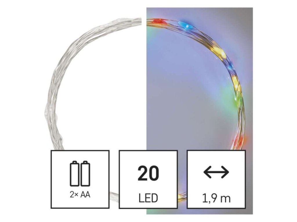 LED vánoční nano řetěz, 1,9 m, 2x AA, vnitřní, multicolor, časovač