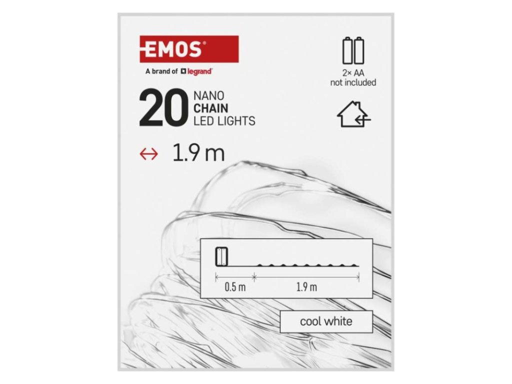 LED vánoční nano řetěz, 1,9 m, 2x AA, vnitřní, studená bílá, časovač