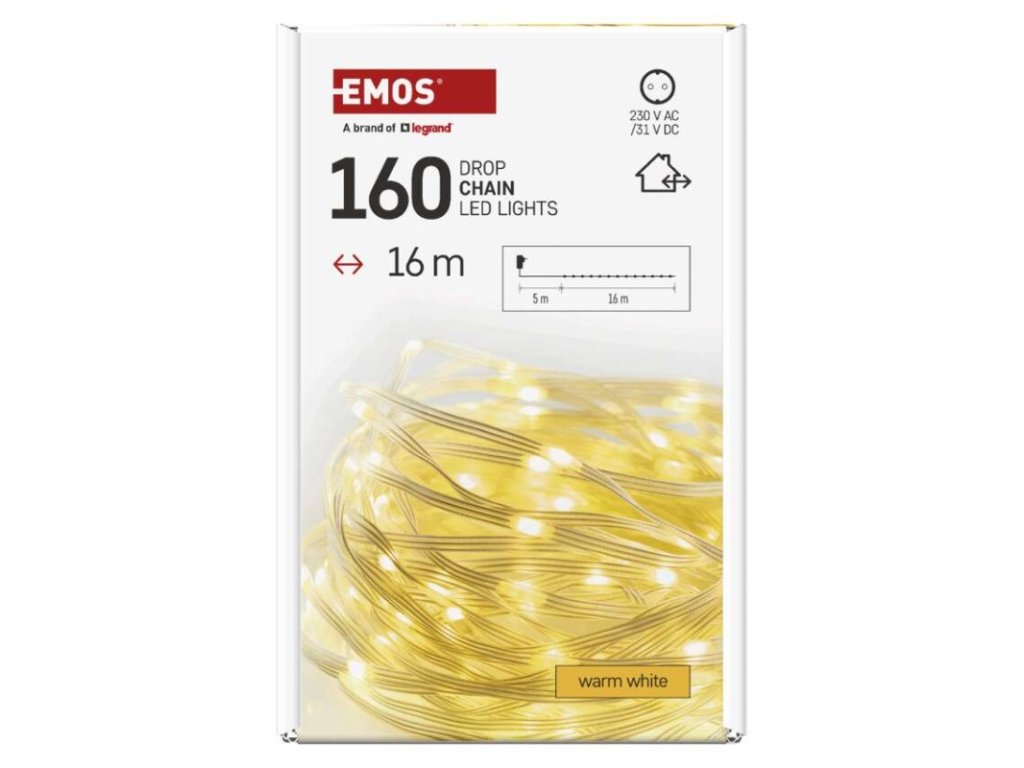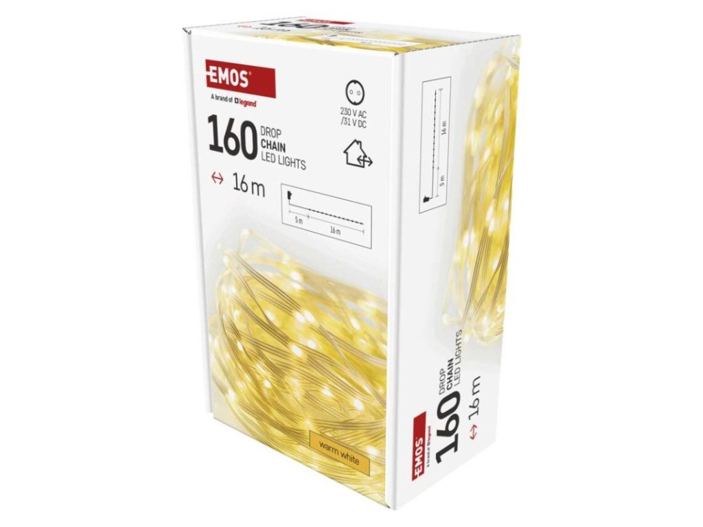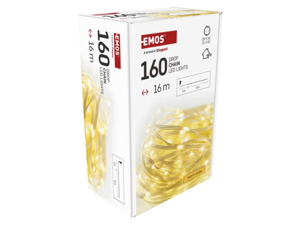 barva drátu: transparentní|barva světla: teplá bílá|časovač: ano|dálkový ovladač: ne|délka přívodu: 5 m|funkce: svítí|krytí: IP44|LED mezera: neuvádí se|materiál: PVC|možnost propojení: ne|počet LED: 160|použití: venkovní i vnitřní|příkon: 3,6 W|prodejní obal: 1 ks, krabice|produkt: řetěz|pro výšku stromu: neuvádí se|rozměr: 16 m|tvar: drop|typ napájení: síťový adaptér|velikost LED: neuvádí se|vstupní napětí: 230 V AC|výstupní napětí: 31 V DC|záruční doba: 2 roky|životnost: 10 000 hodin