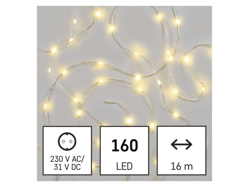 LED vánoční nano řetěz, 16 m, venkovní i vnitřní, teplá bílá, časovač