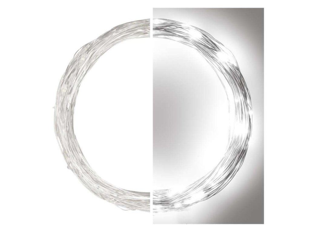LED vánoční nano řetěz stříbrný, 10 m, venkovní i vnitřní, studená bílá, časovač