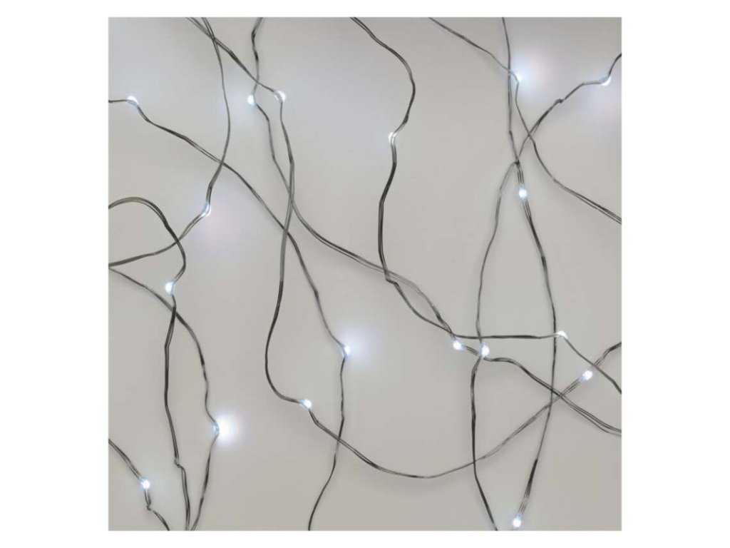 LED vánoční nano řetěz stříbrný, 4 m, venkovní i vnitřní, studená bílá, časovač
