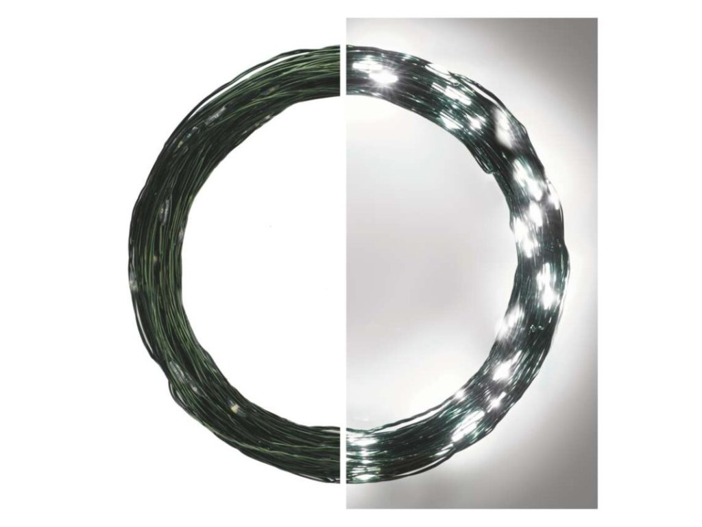 LED vánoční nano řetěz zelený, 15 m, venkovní i vnitřní, studená bílá, časovač